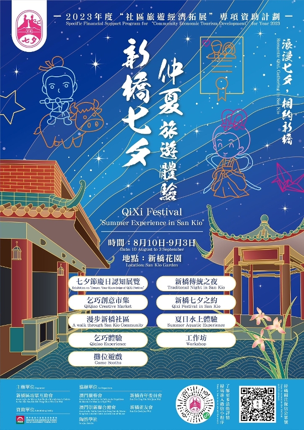 “新橋七夕仲夏旅遊體驗”於8月10日至9月3日在新橋區一帶舉行,期間將舉辦結合地區及節慶特色的活動,包括蘭花展、七夕節展覽、乞巧創意市集、手藝工作坊、攤位遊戲及音樂表演,並設VR虛擬導覽,與參加者一同發掘昔日新橋區的足跡。此外,在區內消費滿指定金額可免費參與互動遊戲或參加於黑沙海灘舉行的夏日水上體驗。