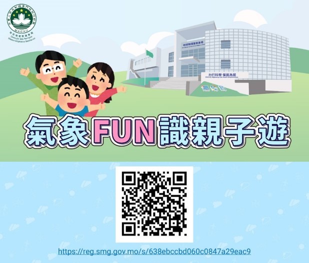 最新一期的「氣象FUN識親子遊」將於9月23日(星期六)舉行,活動費用全免,歡迎本澳4至8歲兒童及其家長參與,報名以家庭為單位,每組家庭可登記2至5人,歡迎家長於9月4日至8日登入活動登記系統進行報名,名額約50人,若報名人數超過招募數量,將採用電腦抽籤方式決定,活動詳情可瀏覽氣象局網頁https://www.smg.gov.mo/zh/news-detail/486。