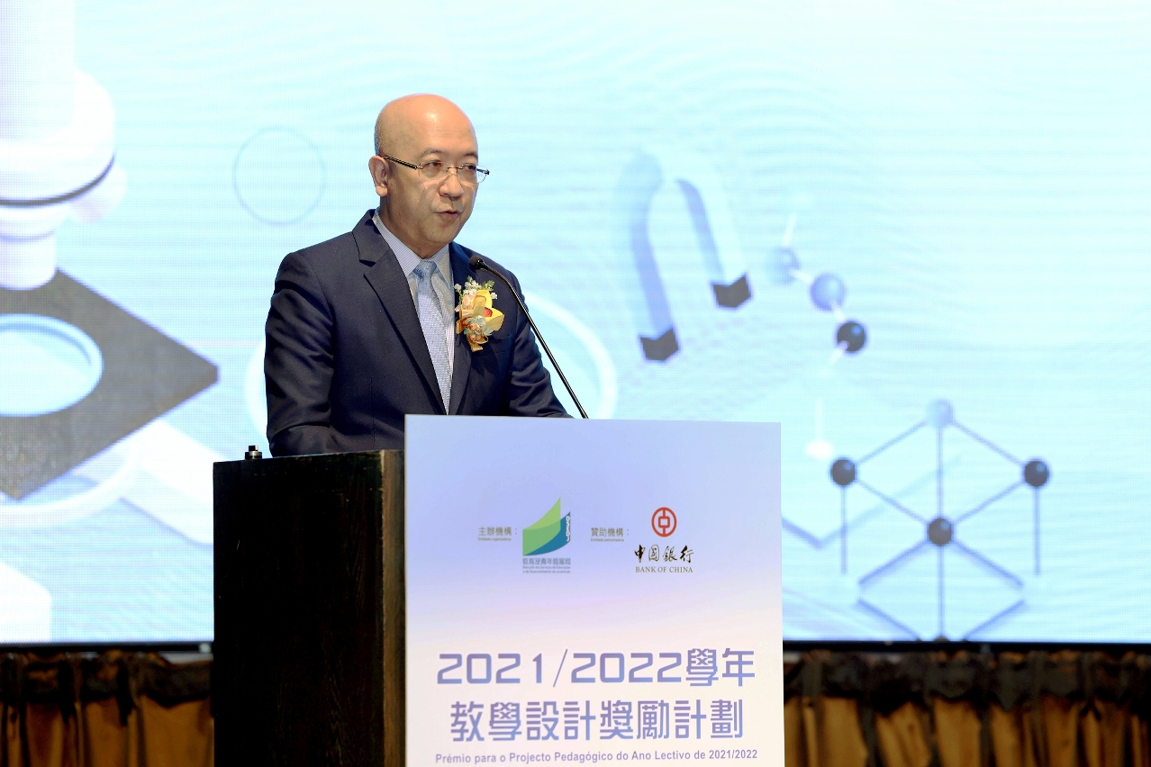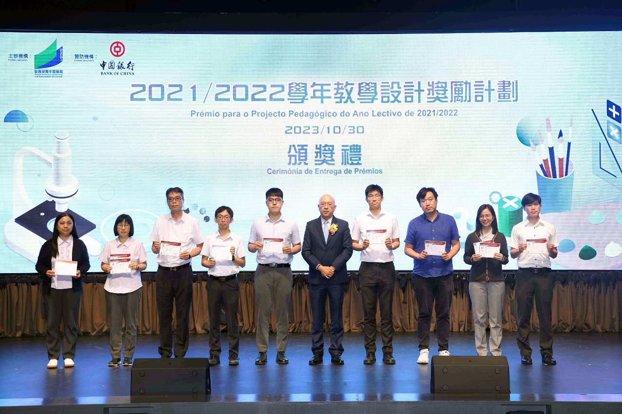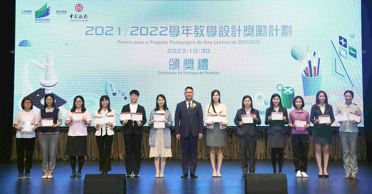 “2021/2022學年教學設計獎勵計劃”頒獎禮於10月30日假聖保祿學校禮堂舉行。教育及青年發展局局長龔志明,中央人民政府駐澳門特別行政區聯絡辦公室教育與青年工作部副部長石書正,中國銀行(澳門)股份有限公司副總裁陳榮達,教青局副局長丁少雄、阮佩賢及黃嘉祺,評審機構代表及顧問,上訴委員會、教育委員會及教學人員專業委員會委員,各高等教育院校及非高等教育學校代表等出席活動。