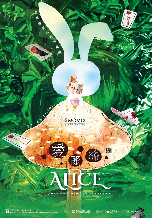 雜技舞蹈劇場作品《愛麗絲》改編自膾炙人口的故事《愛麗絲夢遊仙境》,由莫米克斯舞蹈奇藝坊藝術總監、編舞家摩斯‧潘德頓(Moses Pendleton)創作,演出巧妙結合充滿魔幻元素的設計、影像和特效,並以形體技藝重塑光怪陸離故事角色,為觀眾帶來一場精彩絕倫的仙境歷險之旅。身穿絢麗服裝的舞者施展高超的舞技,讓白兔先生和紅心皇后等熟悉又富有魅力的角色活現觀眾眼前。演出巧妙結合充滿魔幻元素的設計、影像和特效,極佳的舞台效果令大人和小孩都能樂在其中。