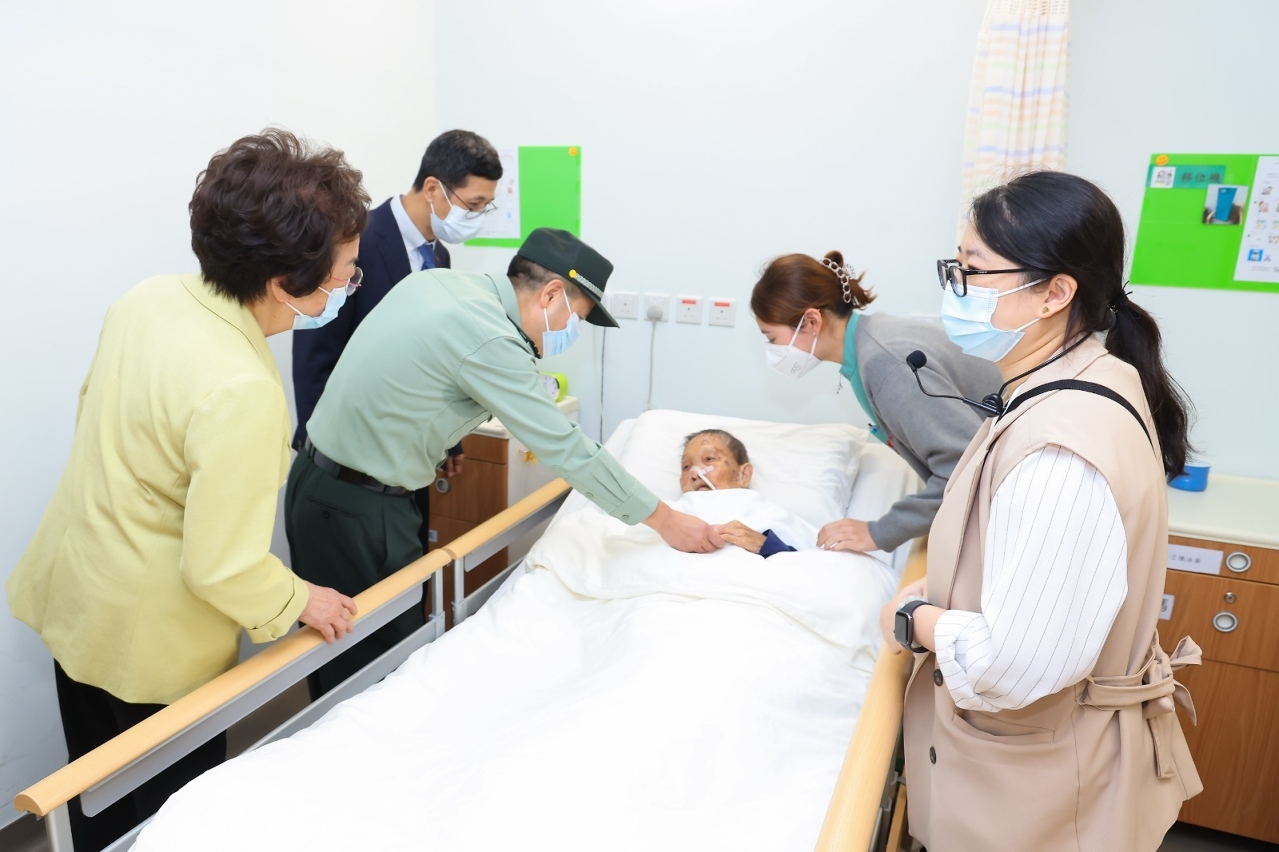 駐澳部隊官兵代表和社會工作局人員首先參觀了母親會下環長者綜合服務中心院護服務樓層,於起居室與長者互動,亦慰問臥床安養的長者,向他們致以真摯的祝福,肯定他們為澳門建設發展做出的貢獻。