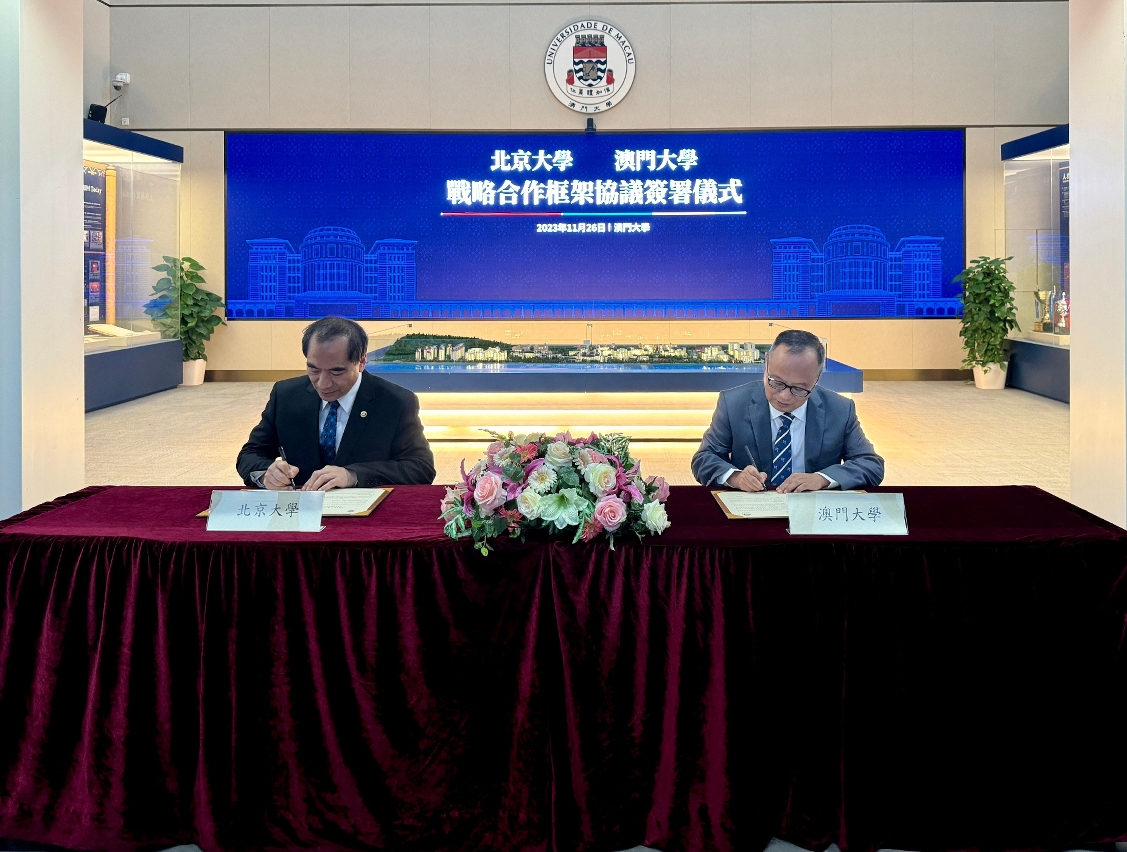 北京大學校長龔旗煌率代表團訪問澳門大學,獲澳大校長宋永華熱情接待。雙方簽署《戰略合作框架協議》,期望共同推動兩地人才培養及科研創新發展,為推動中國高等教育發展作出積極貢獻。