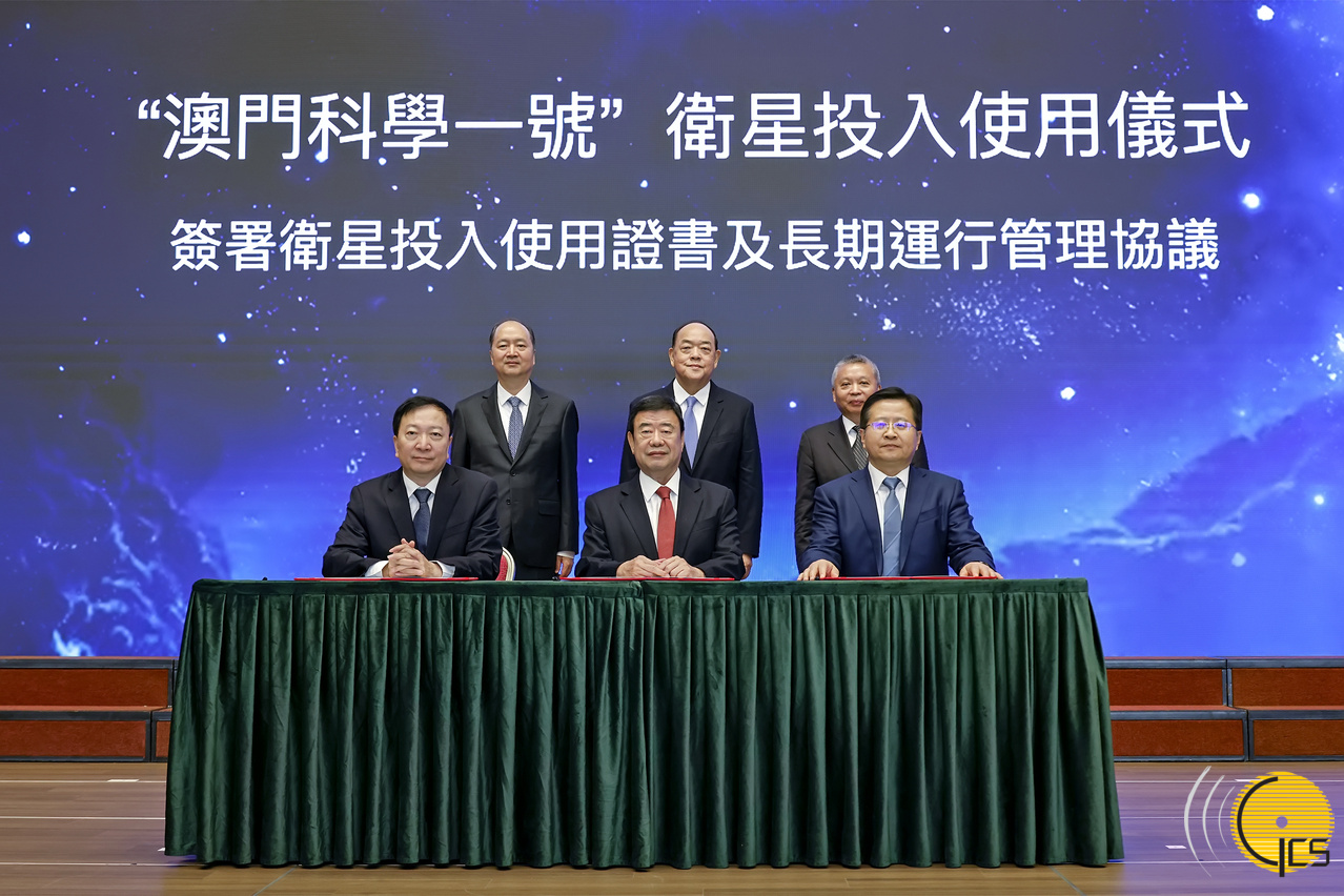 “澳科一號”衛星於本年5月順利發射升空後,經歷半年了在軌測試。在賀一誠行政長官、鄭新聰主任及張克儉局長見證下,內地與澳門相關單位代表在儀式上簽署了衛星投入使用證書及長期運行管理協議,標誌著“澳科一號”衛星正式投入使用。同場亦舉行了“逐夢蒼穹 探索深海—中國航天航海科技薈澳”科普展覽開幕式暨月壤首次入澳揭幕儀式及第二屆澳門航天發展論壇開幕式,由主禮嘉賓點亮“月球柱”,為三項活動打開序幕。