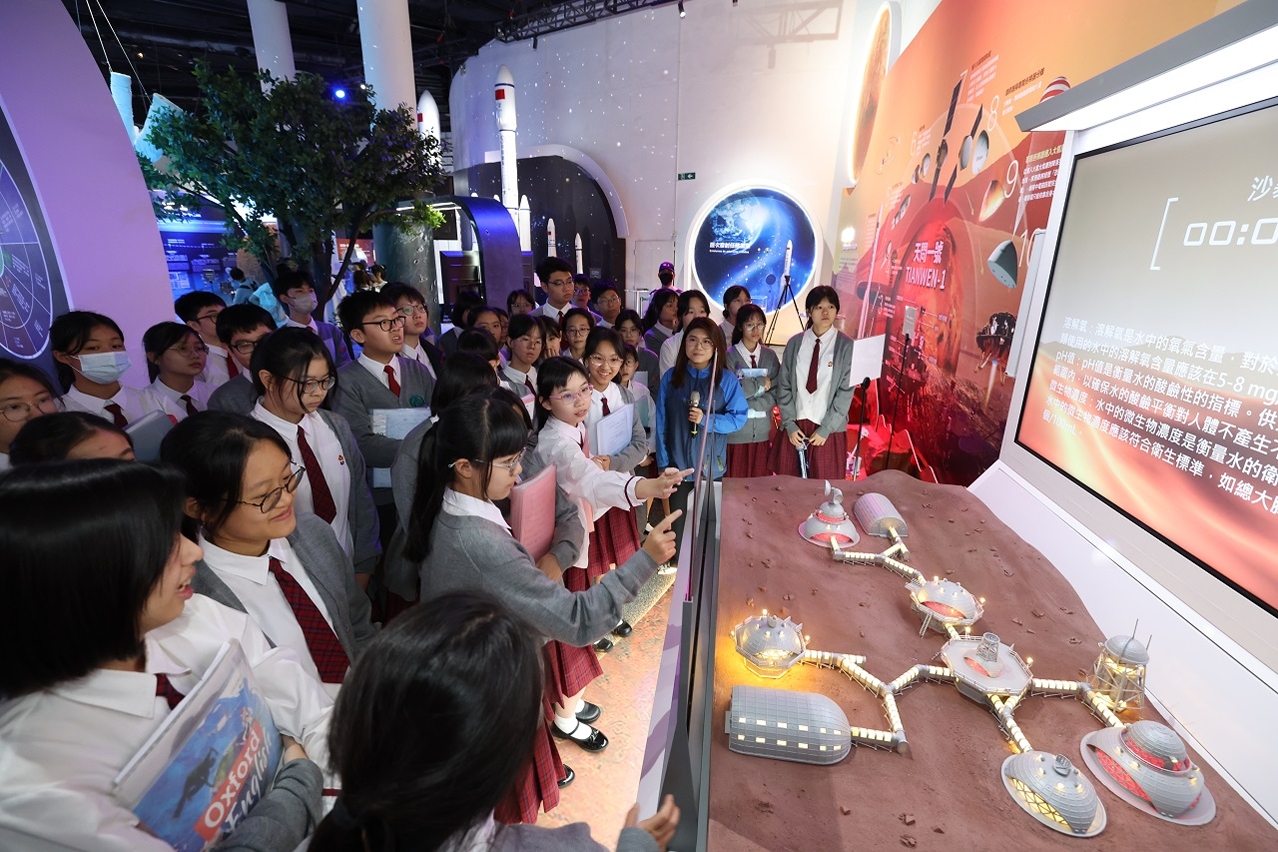 為了讓澳門學生有更多機會認識航天航海知識,展覽特設學校導賞服務,為學生提供生動有趣的學習場景,當中實物展示、互動裝置及虛擬火星車駕駛體驗等深受學生歡迎。參觀學生表示,是次可近距離看到月壤和“嫦娥五號”返回器實物,增加了對中國載人航天發展的認識;另有學生表示對展覽中的互動裝置最感興趣,可模擬潛航員通過聲學通信系統與無線電等技術,與航天員進行了“海天對話”。