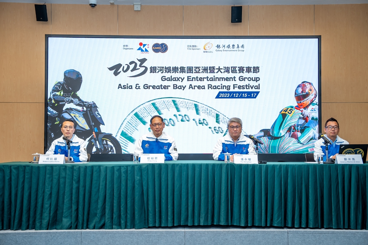 「2023銀河娛樂集團亞洲暨大灣區賽車節」由體育局、中國-澳門汽車總會主辦,銀河娛樂集團冠名贊助,本年12月15日至17日(本周五至周日),在路環小型賽車場舉行,賽車節設有小型賽車及電單車賽,共七項賽事,其中小型賽車組別設三項比賽,包括:ROK GP少年組、KZ組及X30 成人125組;而電單車組別設四項賽事,包括:迷你電單車組、150-190 cc組、250cc組及大灣區電單車賽(150cc),參賽車手分別來自內地、新加坡、菲律賓、中華台北、香港及澳門。賽事分三日進行, 15日為練習日、16日及17日是比賽日。活動免費入場,歡迎市民及旅客到場參觀,現場感受賽車運動的魅力。