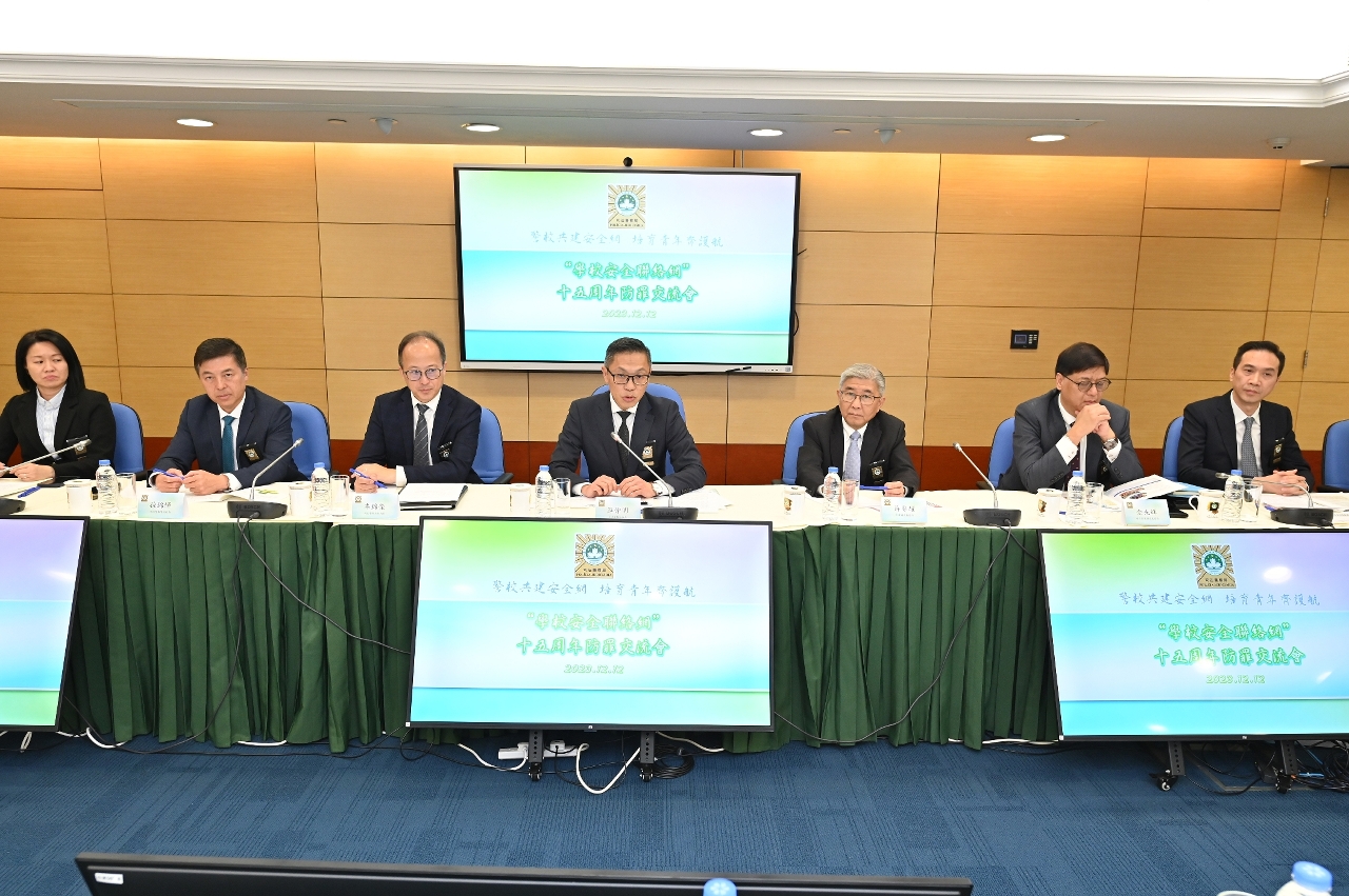 會上,司警局簡介自推行“學校安全聯絡網計劃”以來警校合作持續開展青少年防罪工作概況和未來規劃,提出近期與青少年相關的電訊網絡詐騙、家庭暴力、性侵及毒品犯罪,以及輕生或自殘事件等均須要警校共同關注,並與各代表探討優化合作機制。