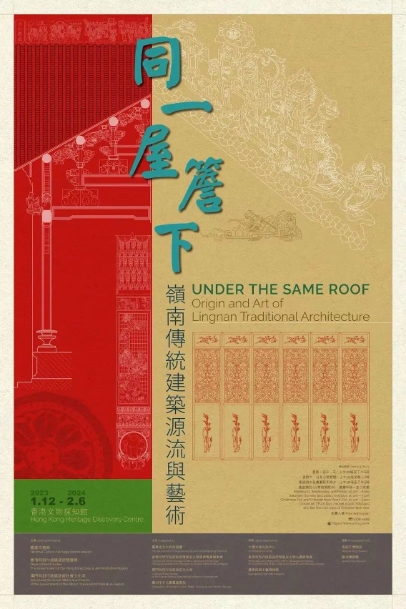 “同一屋簷下:嶺南傳統建築源流與藝術”展覽於香港尖沙咀海防道九龍公園香港文物探知館舉行,展期至2024年6月2日,免費入場。詳情可瀏覽香港發展局古物古蹟辦事處網頁(www.amo.gov.hk/tc/news/index_id_146.html?year=2023)或致電(852)2208 4488查詢。