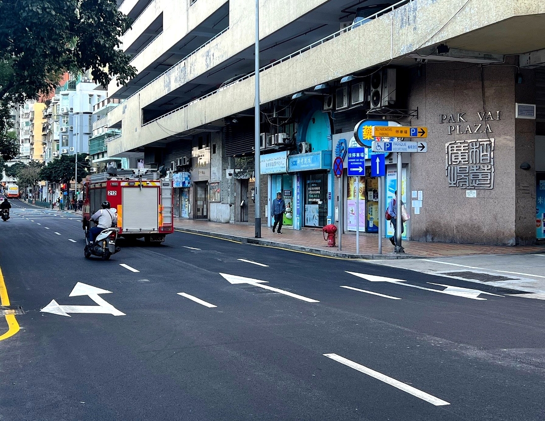 市政署早前以即刨即鋪,夜間施工日間通車模式,分階段對美副將大馬路重鋪新型瀝青,工程如期竣工,今(29日)已恢復正常通車。