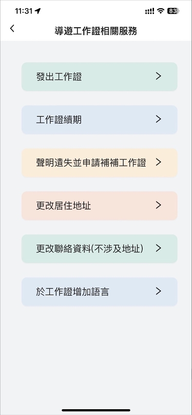 2024年1月1日開始,導遊工作證持有人或申請者可登入“一戶通”帳戶,進入導遊工作證相關服務頁面,從而進行工作證的發出、續期、遺失補領、更改地址、更改聯絡資料以及增加語言等操作。