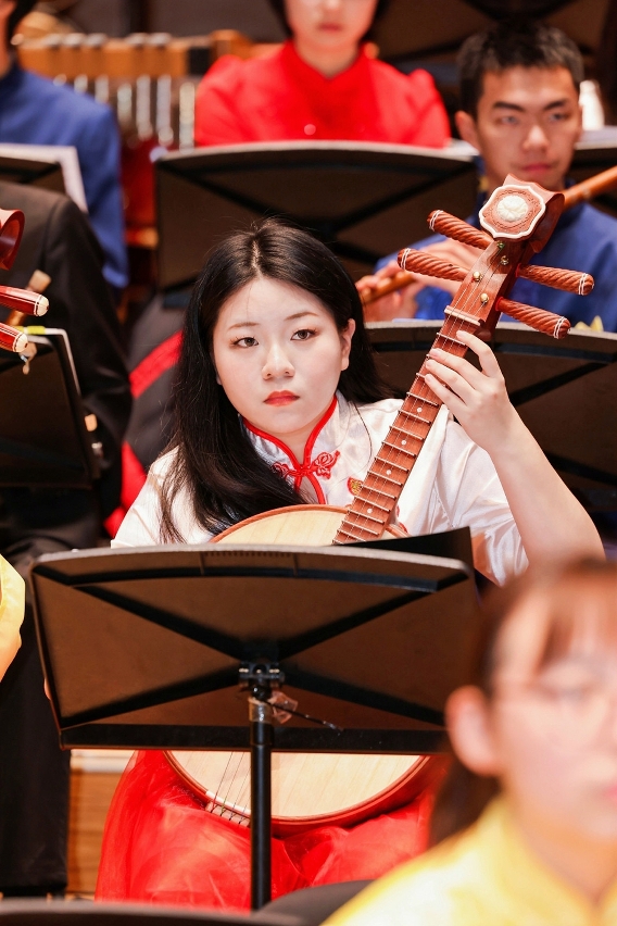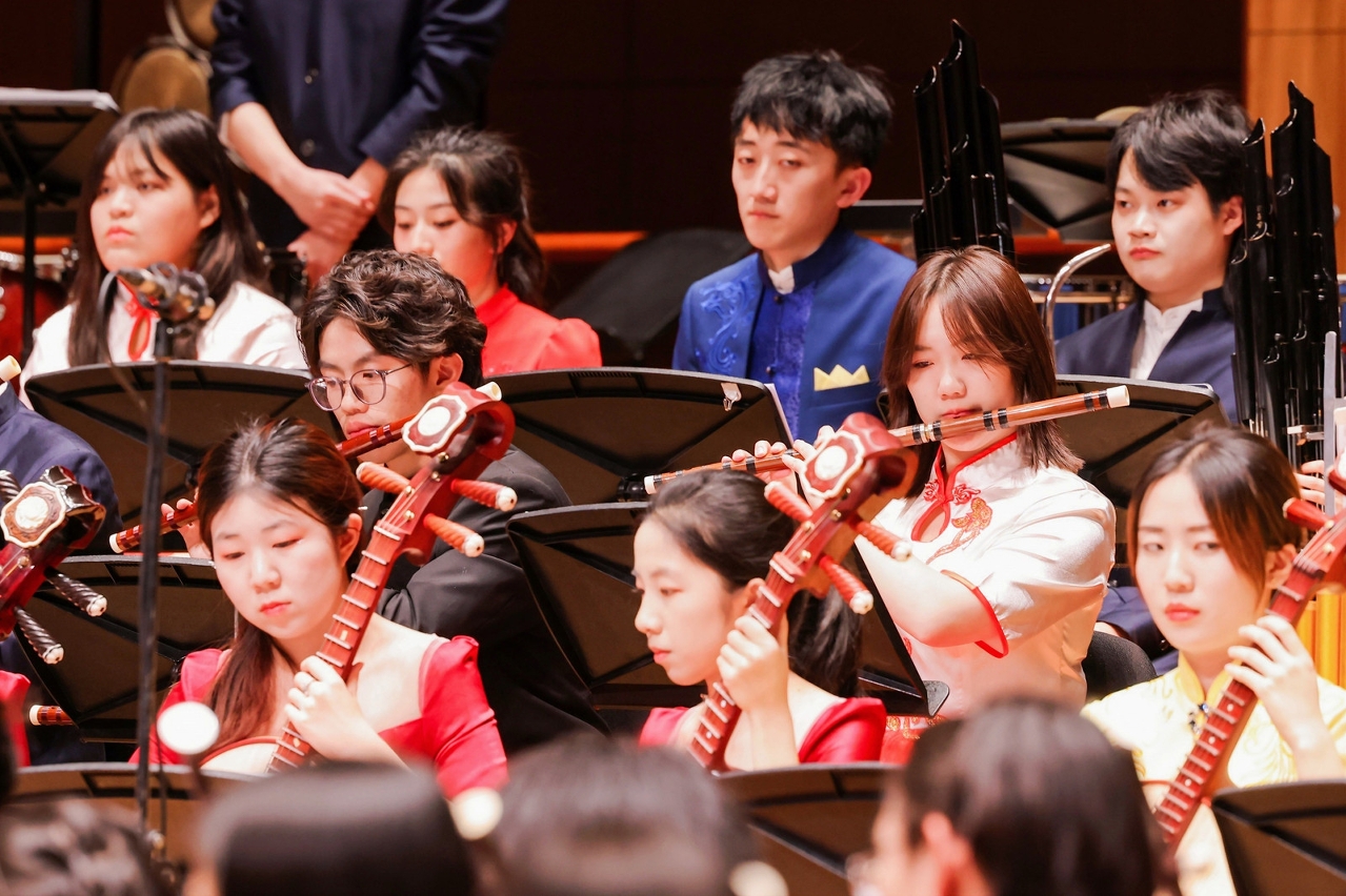 音樂會融合了絲竹樂、鑼鼓樂、吹打樂等特色民族風格,呈現了八首不同風格的音樂曲目。學生們用音符奏出對傳統音樂的熱愛,充分展示了中華民族音樂的魅力和多樣性,演出觸動人心。觀眾透過共享體驗深感動容,全場掌聲持續不斷。