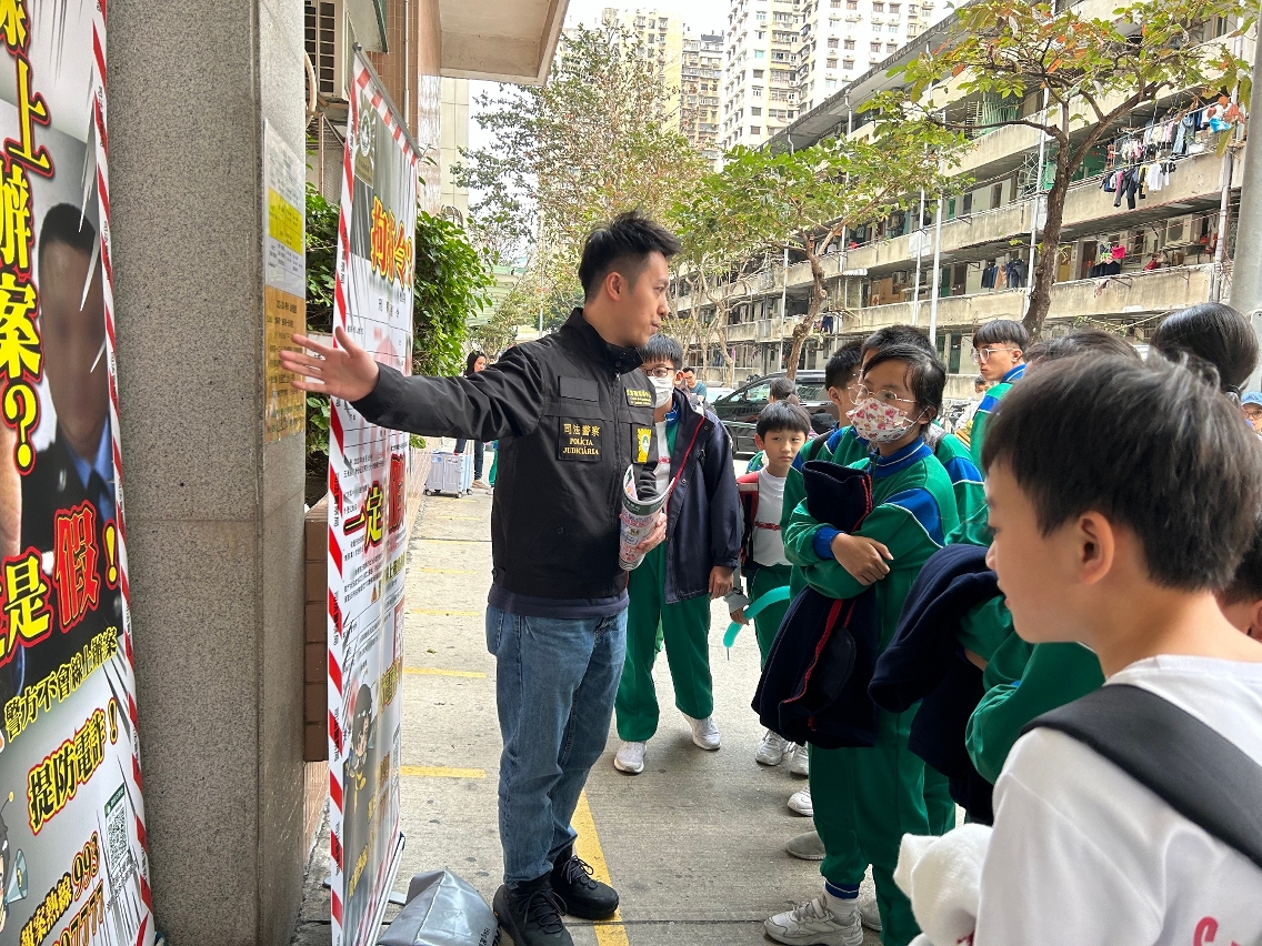 針對近年本澳電話詐騙案件高發,尤其是涉及學生群體的案件日漸增多,司法警察局積極派員走訪本澳學校宣傳防騙。近日,司警局派員走訪本澳小學及幼稚園,務求提升師生尤其是家長的防範意識和識別能力,共同築牢全民防範電話詐騙的安全防線。