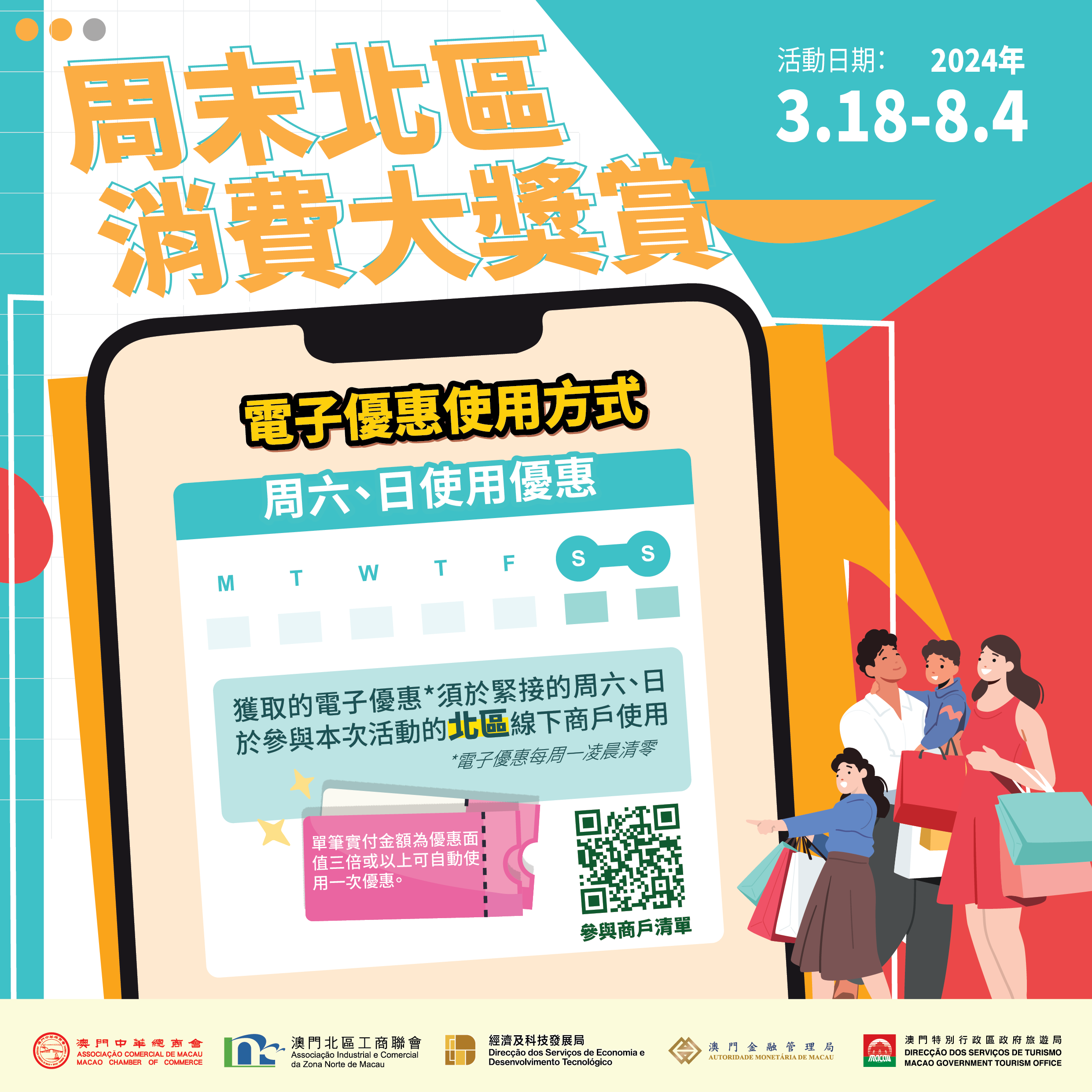 消費者於周末前往北區使用電子優惠前,可先在活動專頁(www.macaospendingrewards.com)查閱參與本次活動的北區商戶清單和商戶提供的額外周末優惠。