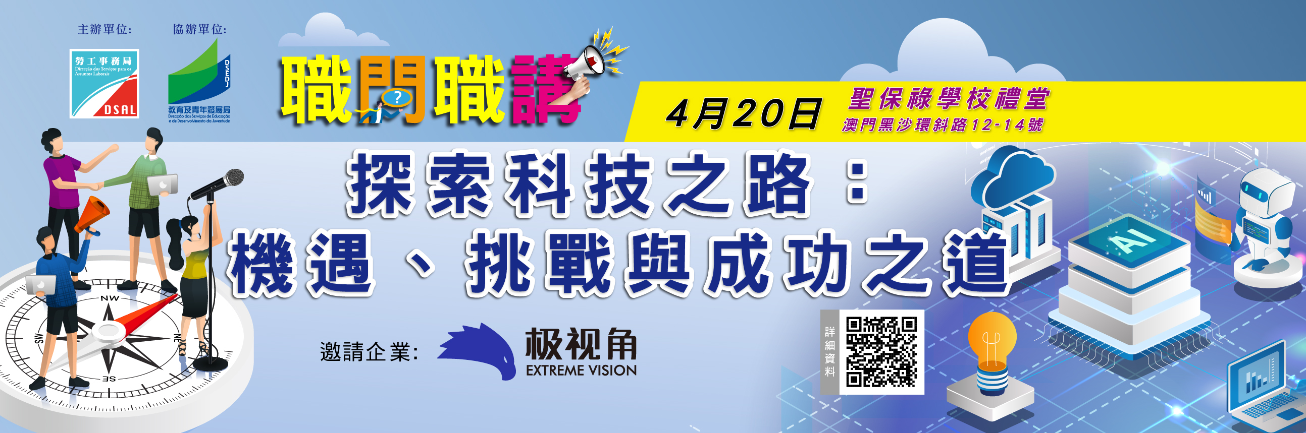 為配合特區政府積極推動“1+4”適度多元發展策略,為增加青年學生對高新科技產業的了解,及早做好生涯規劃,勞工事務局於4月20日舉辦題為“探索科技之路:機遇、挑戰與成功之道”的“職問職講”行業講座。是次講座邀請人工智能視覺算法供應商 “極視角科技有限公司”(下稱“極視角”)合夥人鄭重科先生擔任主講嘉賓。透過與“青年政策”跨部門跟進小組合作,是次活動由教育及青年發展局協助組織學生及青年團體代表參加,共同探索科技行業的發展機遇。講座由4月9日起接受網上報名。