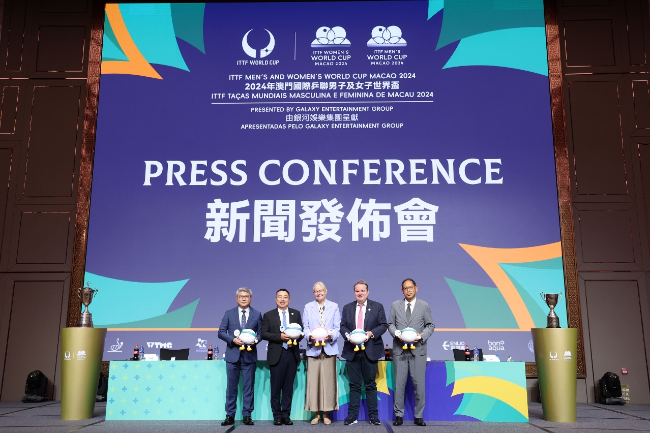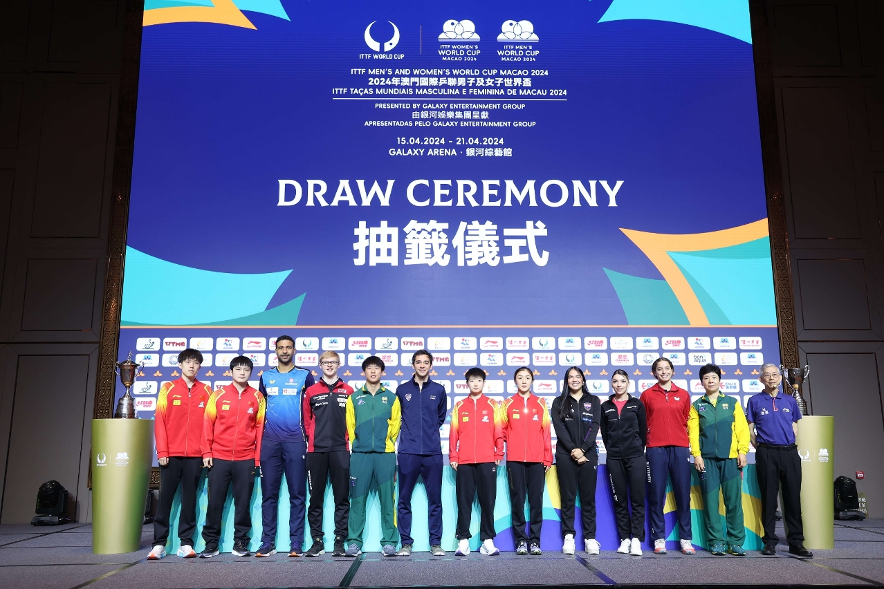 由國際乒乓球聯合會(ITTF)授權,體育局、銀河娛樂集團及世界乒乓球管理集團有限公司主辦、澳門乒乓總會協辦的「2024年澳門國際乒聯男子及女子世界盃 ─ 由銀河娛樂集團呈獻」於明(15)日起至4月21日,一連7日在銀河綜藝館舉行,主辦單位今(14)日進行了新聞發佈會及抽籤儀式。