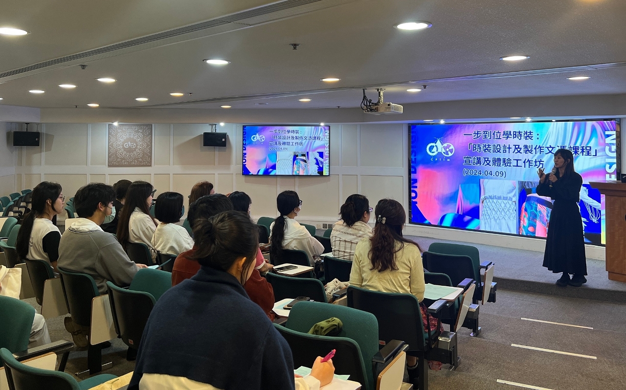 工作坊開始以該中心主辦的“時裝設計及製作文憑課程”為引子,介紹課程內容、專業師資及教學特色。該課程為生產力中心重點課程之一,為本地培養時裝精英的搖籃。課程在定位上力求多元發展,以結合創意藝術和科技,科目包涵時裝設計、繪畫技巧、服裝材料、生產圖及電腦應用、紙樣及縫製工藝、服裝科技及軟件的應用、創業及品牌營銷等。為有志創立時裝品牌、投身時裝行業的人士而設的實務應用課程。