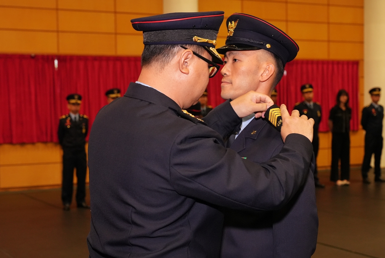 是次獲晉升為首席消防員的人員共7位,均經過5個月的專業培訓,包括共同、專業及實習三個階段,且經考核合格才獲晉升為首席消防員。課程內容主要學習消防技術專業知識,包括滅火技術、滅火設備、偵察及救助物資、查驗、試驗監察之技術、防火安全的法律制度及危險品安全管理。