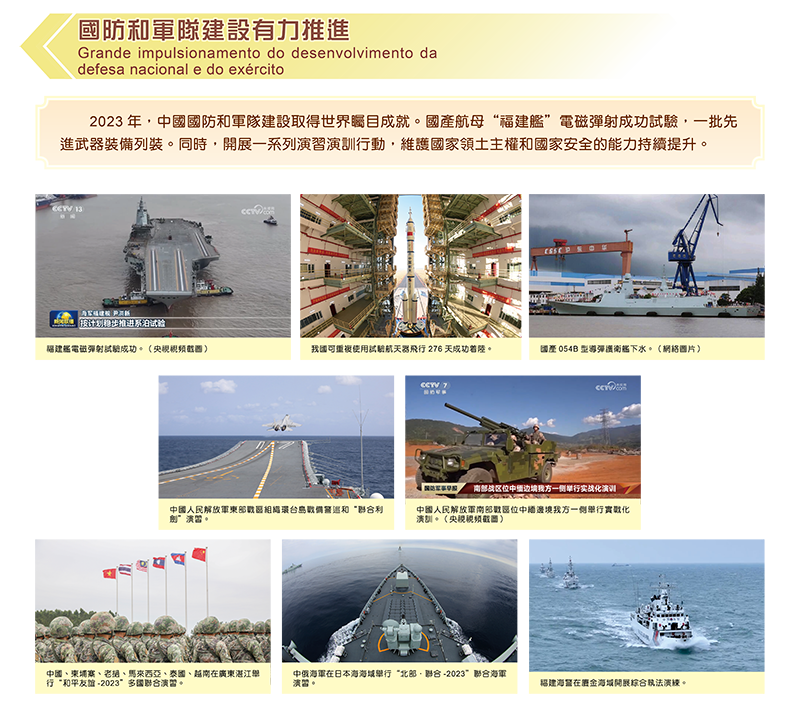 展覽第一部分“國家發展取得新成就,復興偉業開啟新征程”,展示了有關全面貫徹中共二十大精神開局良好、經濟民生持續向好、科技創新蓬勃發展、大國責任積極擔當,以及國防和軍隊建設有力推進等內容。