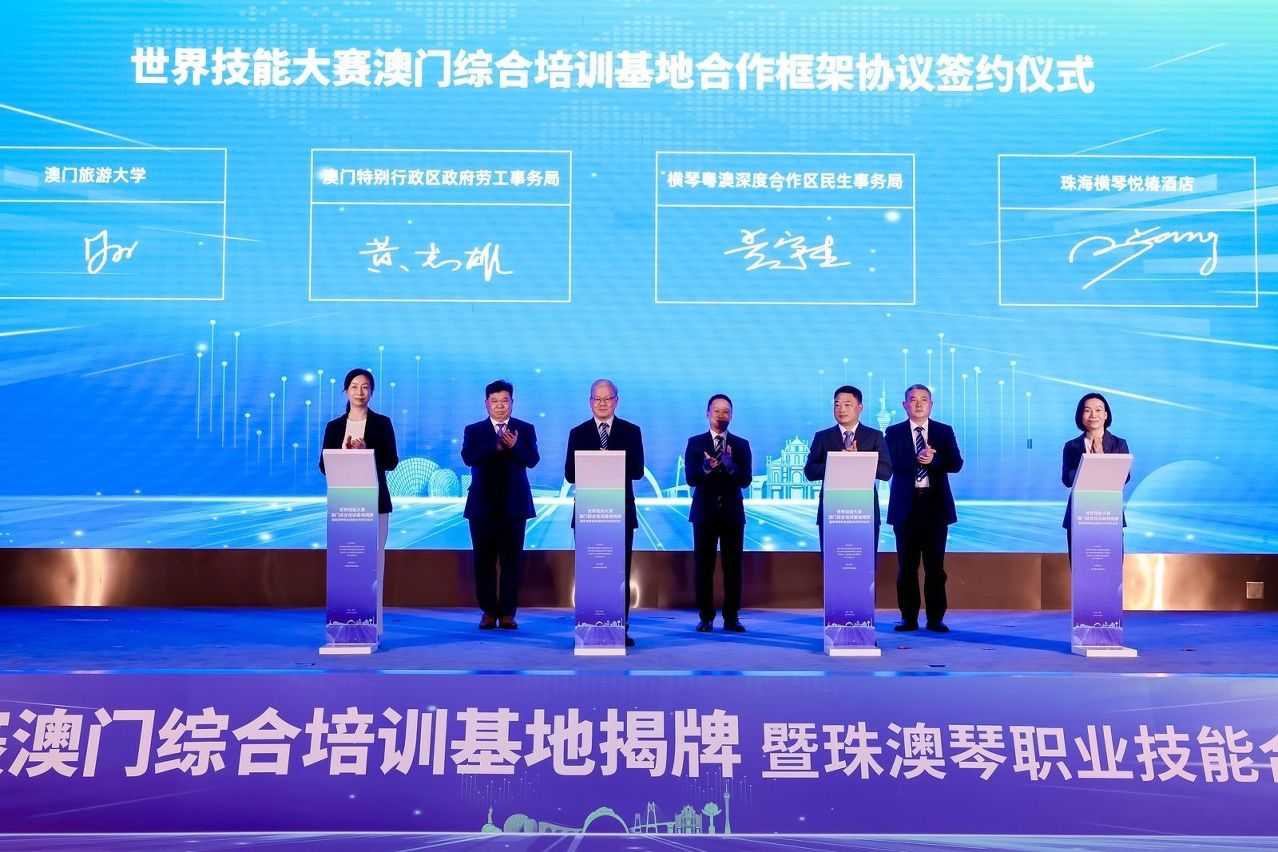 活動上,澳門勞工事務局、澳門旅遊大學及橫琴合作區民生事務局、珠海橫琴悅椿酒店四家共建單位簽署了《關於建設“世界技能大賽澳門綜合培訓基地”合作框架協議》,澳門綜合培訓基地設在珠海橫琴悅椿酒店,旨在推動粵澳兩地技能人才交流,助力粵港澳大灣區技能人才高地建設。