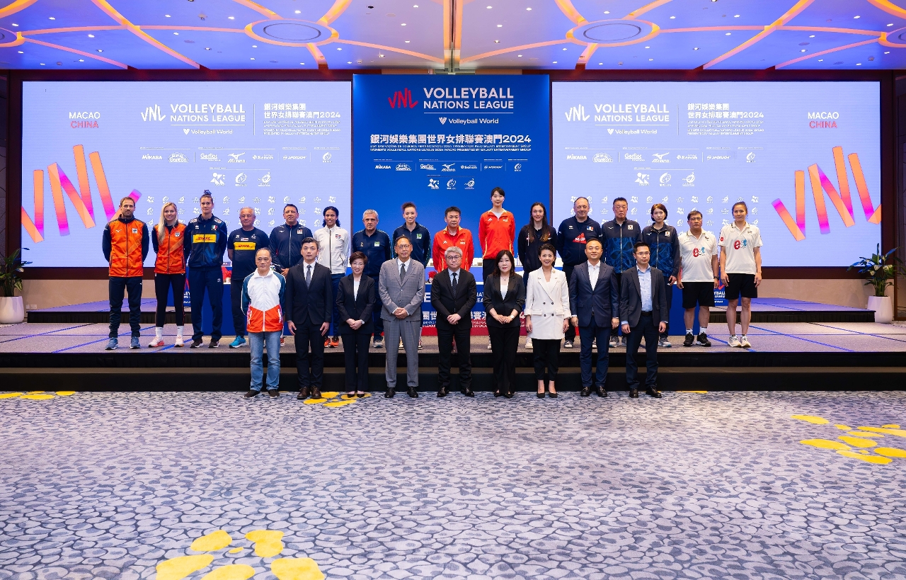 由澳門特別行政區政府體育局、銀河娛樂集團及中國澳門排球總會主辦的「銀河娛樂集團世界女排聯賽澳門2024」,明(28)日於銀河綜藝館展開,賽事組委會今(27)日舉行新聞發佈會,八支球隊包括中國、巴西、多明尼加共和國、法國、意大利、日本、荷蘭及泰國隊的教練及隊長會見傳媒,各隊均希望在澳門站發揮最佳表現。明日首場賽事將於下午4時展開,先由泰國對多明尼加共和國,晚上7時30分將由巴西對日本。