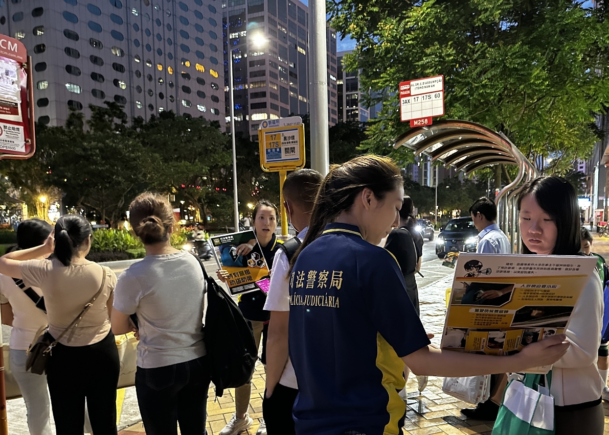 為提醒市民注意防範盜竊及電訊網絡詐騙,司法警察局開展社區宣傳活動,派員到本澳各區巴士站提醒大眾防範公共交通工具上的盜竊,並推廣司警局“反詐程式”,藉此提高大眾的防罪能力。是次社區宣傳活動接觸了約3,000名居民及旅客。
