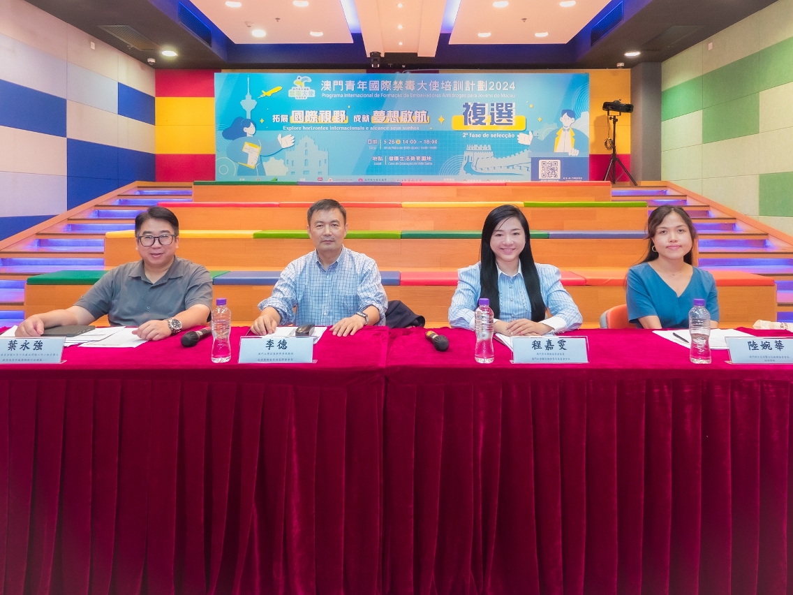 由社會工作局、教育及青年發展局聯合主辦,澳門基督教青年會、澳門婦女聯合總會、澳門中華教育會和澳門中華學生聯合總會共同協辦、禁毒委員會及青年事務委員會支持舉辦“澳門青年國際禁毒大使培訓計劃”,於5月26日已進行複選,三位優勝者分別為培正中學初三級吳詠心、嘉諾撒聖心英文中學高二級梁芷瑤,以及鏡平學校高二級吳潔瑤。