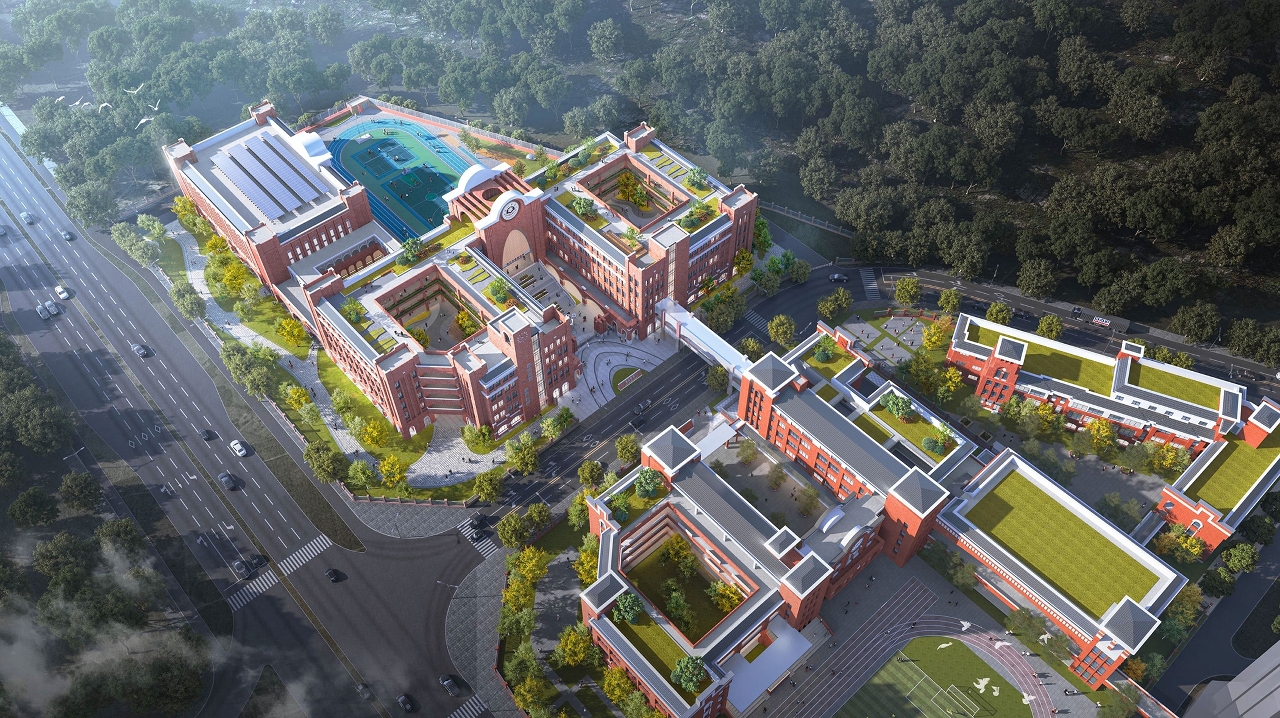 項目位於小橫琴山南側,澳門新街坊西側,建築採用古典端莊的歐式風格,在設計上有機結合地形特點,建設向北側山體打開的佈局,空間感更廣闊,打造「融景入園」、綠意盎然的優質校園,以提升整體學習環境。
