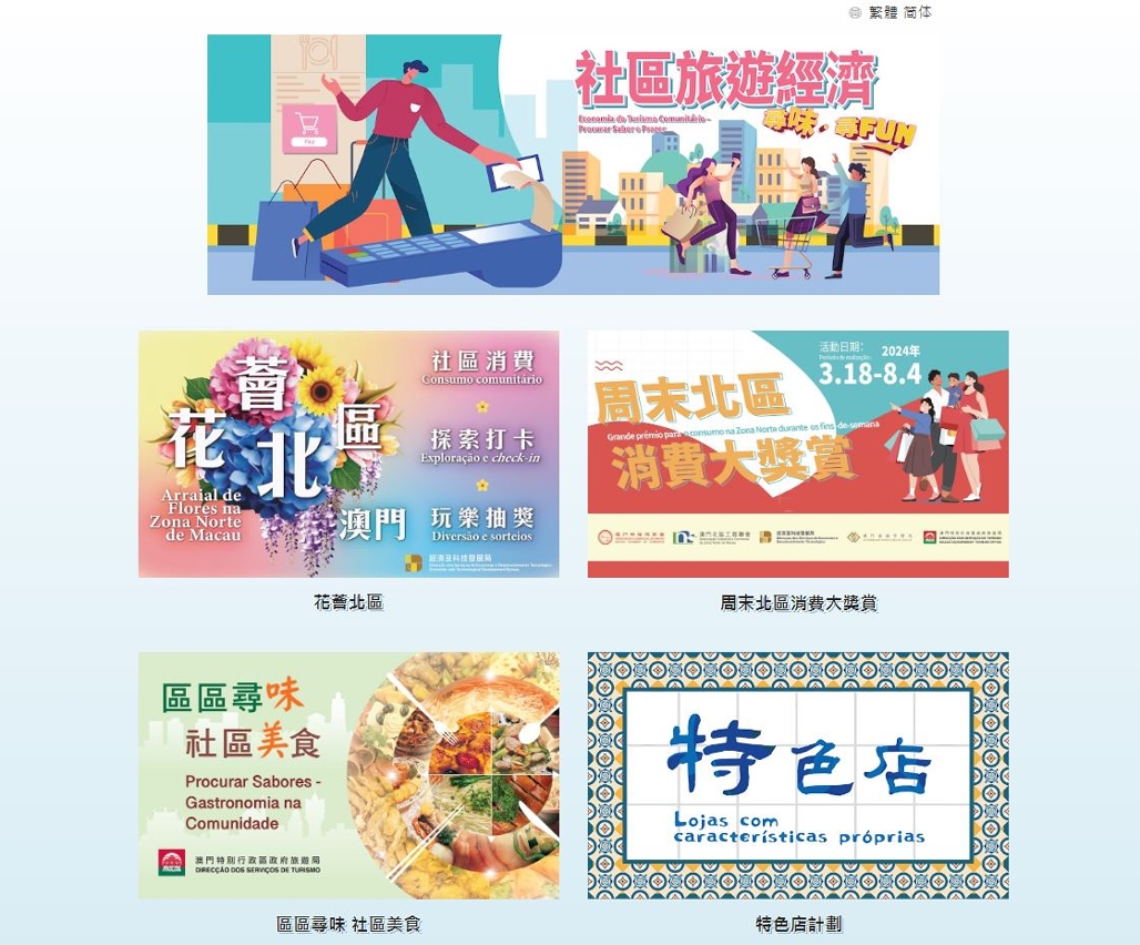 為更好整合社區旅遊經濟相關資訊,便利居民及旅客查閱,經科局和旅遊局推出了“社區旅遊經濟尋味尋FUN”專頁(https://www.macaocomecon.com/),集合了本澳社區旅遊、社區經濟的活動和項目,目前設有“花薈北區”專頁、“周末北區消費大奬賞”活動專頁、 “區區尋味 社區美食”影片集以及“特色店計劃”活動專頁四個分頁,網站將持續更新。