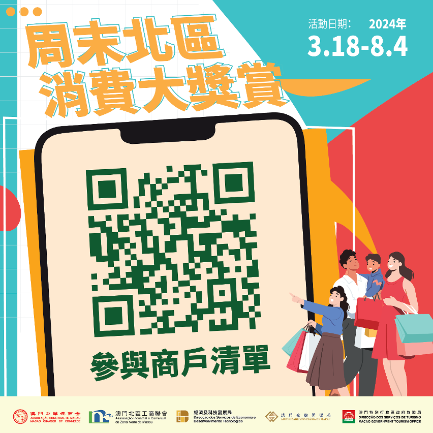 為提振北區經濟,進一步改善民生區商戶的經營,特區政府聯同澳門中華總商會、澳門北區工商聯會,於3月18日至8月4日期間合辦“周末北區消費大奬賞”促消費活動。