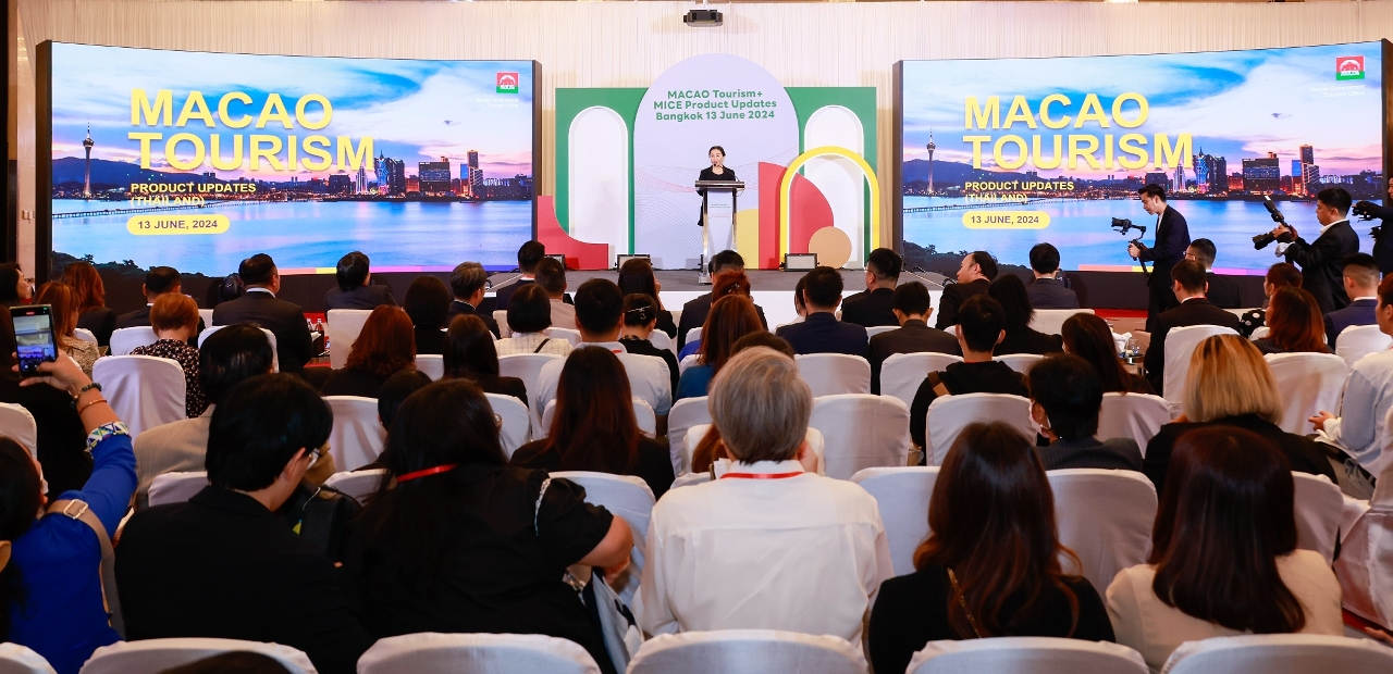 澳門“旅遊+會展”最新產品資訊推介會及洽談會今(13日)在曼谷盛泰瀾酒店會議中心 (Centara Grand & Bangkok Convention Centre at Central World)舉行。澳門旅遊局局長文綺華、泰國旅行社協會前副主席Somchai Chomraka、澳門貿易投資促進局行政管理委員會執行委員李藻森、澳門會展產業聯合商會副會長張敬文、泰國旅行社協會高級顧問Wachira Wichaiwatana、橫琴粵澳深度合作區經濟發展局文旅會展商貿處處長林衍傑和澳門旅遊局駐泰國代表處總經理Uracha Jaktaranon等嘉賓,聯同澳門國際機場專營股份有限公司代表、澳門六大綜合度假休閒企業代表、澳門和泰國業界等約150人出席活動。