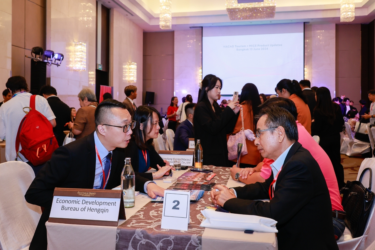 旅遊局在會上首先向泰國旅遊業界介紹澳門旅遊業的最新現況;澳門貿易投資促進局代表也介紹澳門會展環境,讓與會者加深瞭解澳門的旅遊、會展及營商趨勢;橫琴粵澳深度合作區經濟發展局代表介紹深合區最新文旅發展情況。泰國與澳門旅遊業界在洽談環節交流對接,針對泰國以至東南亞客源市場,共同構思更多澳門旅遊新路線及延伸產品,促進旅客互訪。