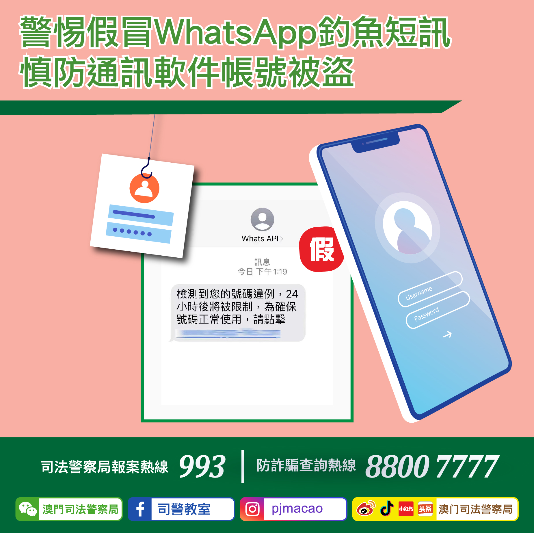如有懷疑,可使用司警局“反詐程式”查詢風險指數或上報資料,又或致電司警局防詐騙查詢熱線88007777 及報案熱線993 求助。