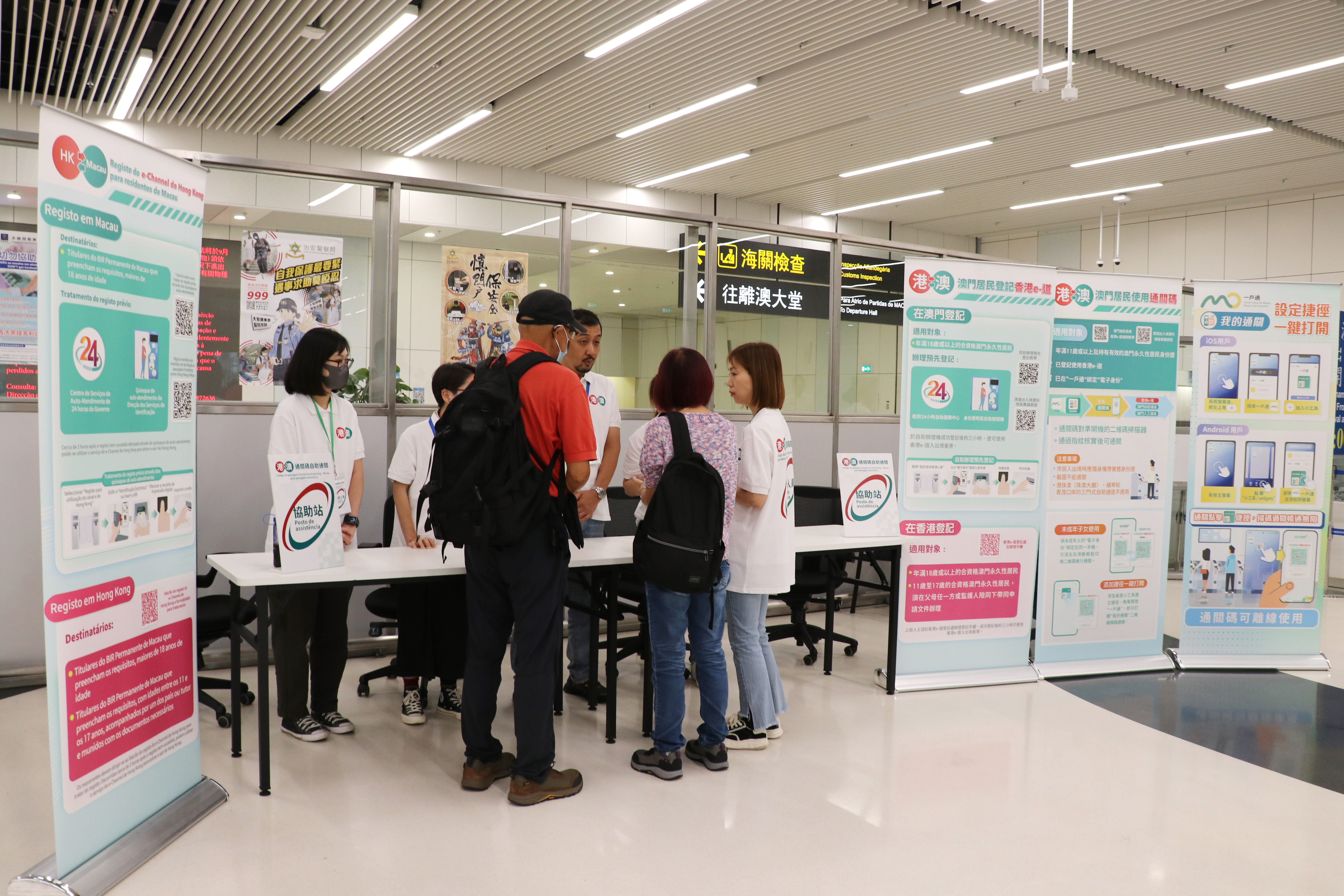 為協助居民生成“港澳通關二維碼”通關,身份證明局、行政公職局及市政署在“港澳通關二維碼”生效初期,於港珠澳大橋澳門口岸、外港客運碼頭及氹仔客運碼頭三個出入口岸設置“港澳通關二維碼”協助站,着力推廣“港澳通關二維碼”在口岸通關上的應用。如居民在使用“港澳通關二維碼”通關時需要協助,歡迎到上述協助站查詢。