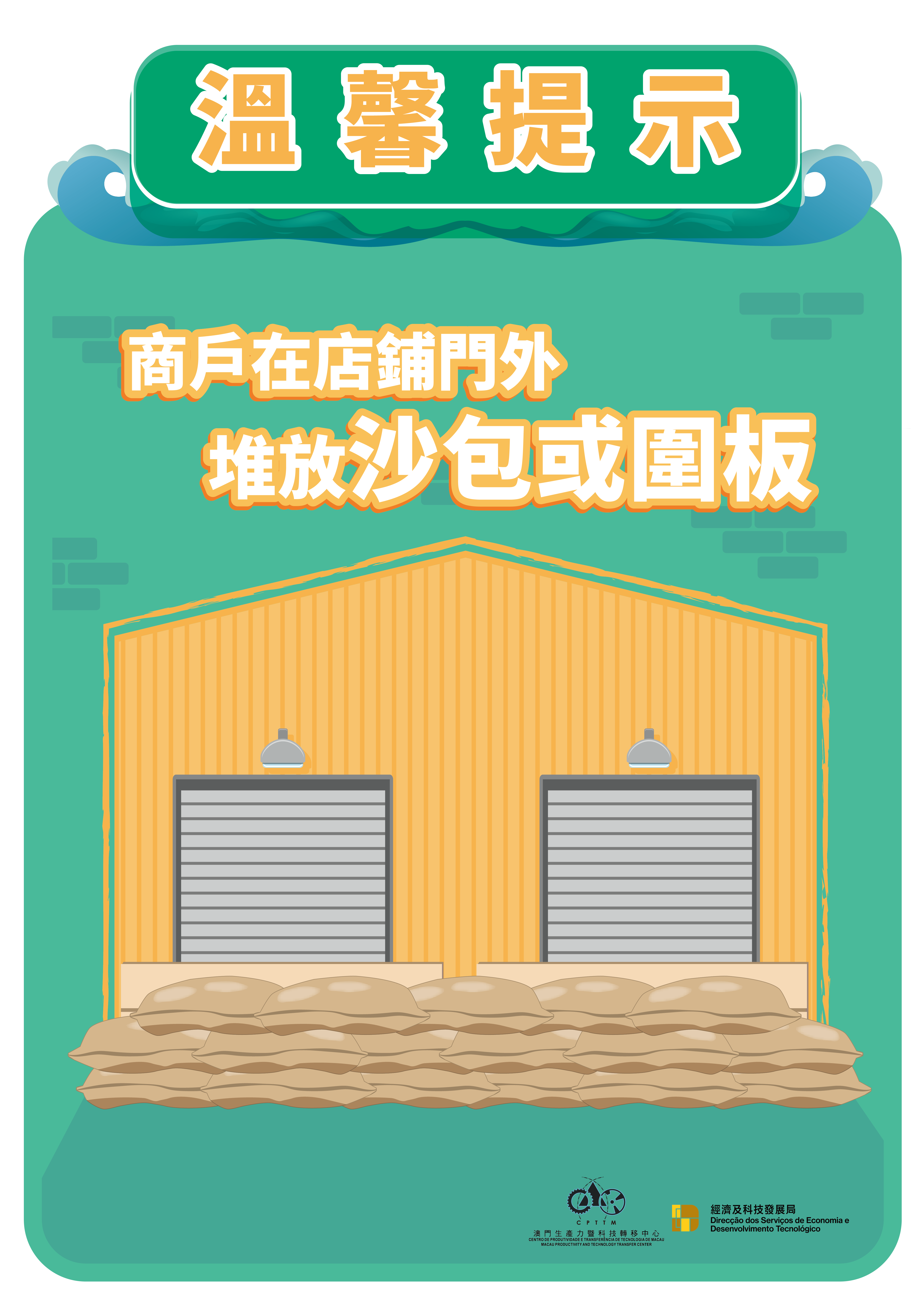 地球物理氣象局已發出一號風球信號,受南海中部的熱帶低氣壓影響,本澳未來數日風勢逐漸增強,驟雨增多,間中有狂風雷暴,低窪地區需留意因大雨而造成的水浸。經濟及科技發展局與澳門生產力暨科技轉移中心呼籲,各商戶特別是位處低窪地區的中小企業,應做好防浸防風的準備工作及預防措施,以免造成貨物及設備損失。同時,商戶應密切留意氣象局發佈的最新天氣情況。