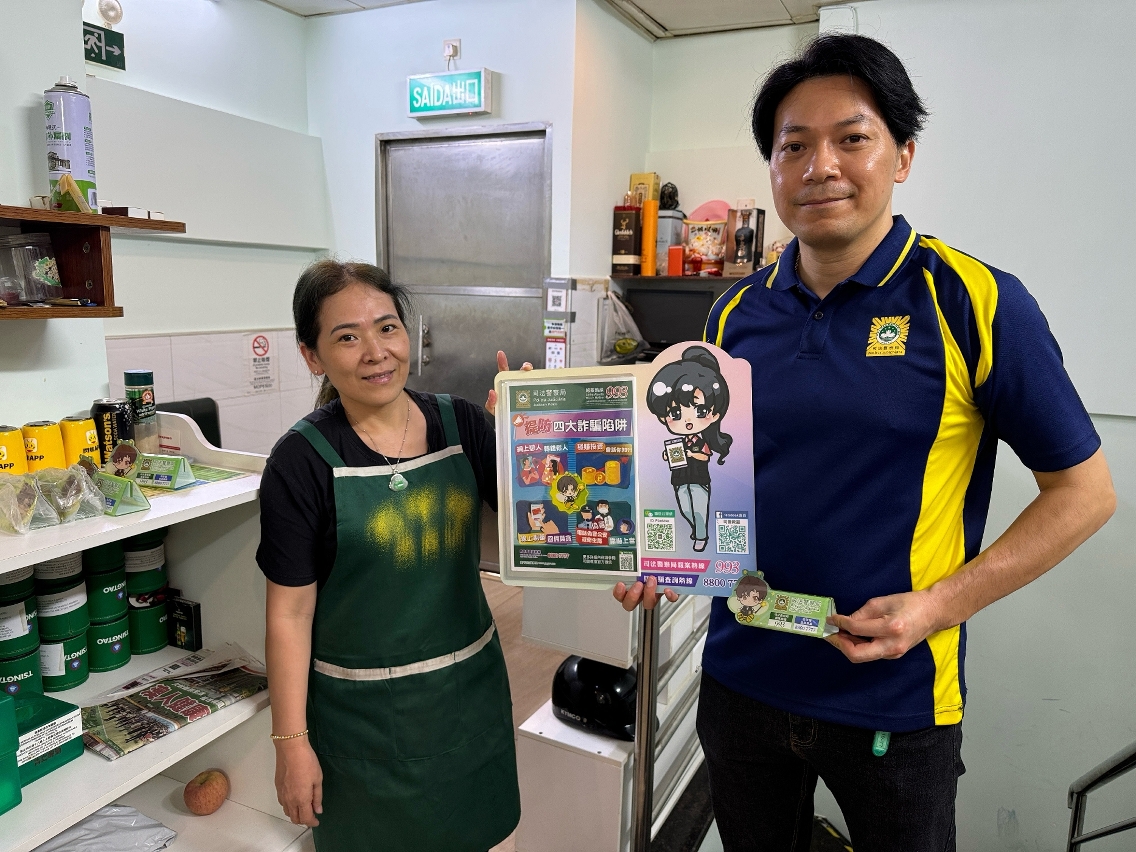 此外,司警局人員提醒商戶做好防盜措施,妥善保管店內貴重財物和設備,店員之間亦應互相照應,勿讓不法分子有機可乘。另外,亦鼓勵市民關注司警局在各社交平台的官方帳號,以瞭解更多警務消息和防罪資訊,並善用反詐程式查詢詐騙風險指數以及上報懷疑詐騙消息,警民合作共同防罪滅罪。