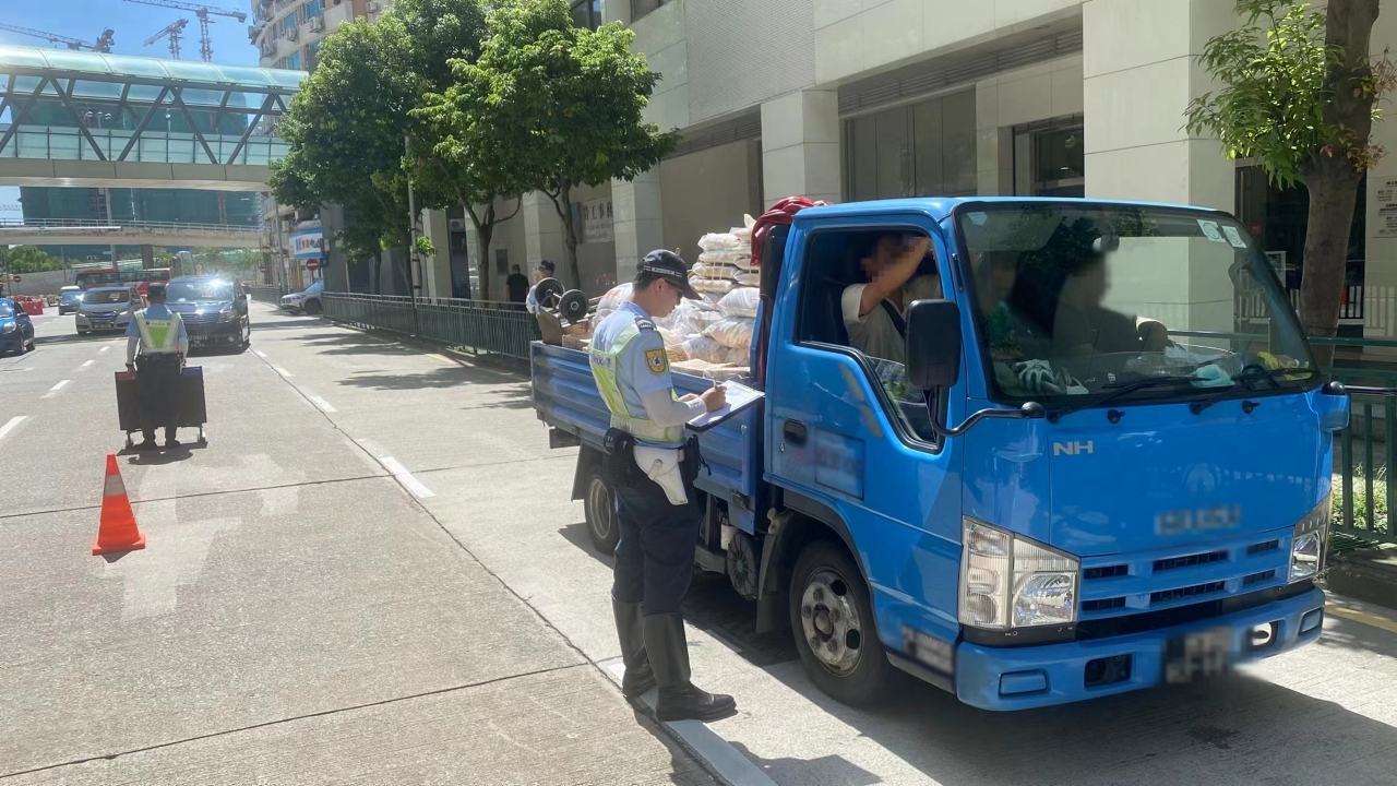 查車行動方面,共截查43輛車輛,合共檢控4宗違例(2宗沒有使用行車燈、1宗輪胎尺寸與登記摺所載不符及1宗運載粉末狀物品沒有完全覆蓋)。