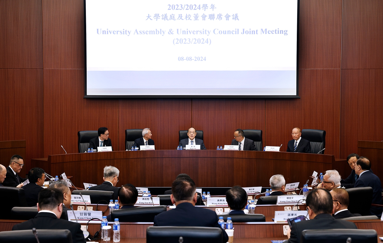 澳門大學2023/2024學年大學議庭及校董會聯席會議今(8)日於澳大何賢會議廳舉行,由澳門特別行政區行政長官、澳大校監兼大學議庭主席賀一誠主持。他指出,澳門正處於新的發展階段,應發揮其在國家發展大局中的特殊地位和獨特優勢,促進經濟適度多元發展。澳大應助力建設教育強國,推動新質生產力加速形成,服務國家高質量發展。