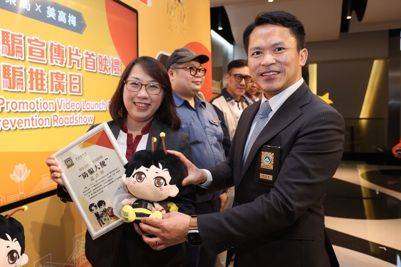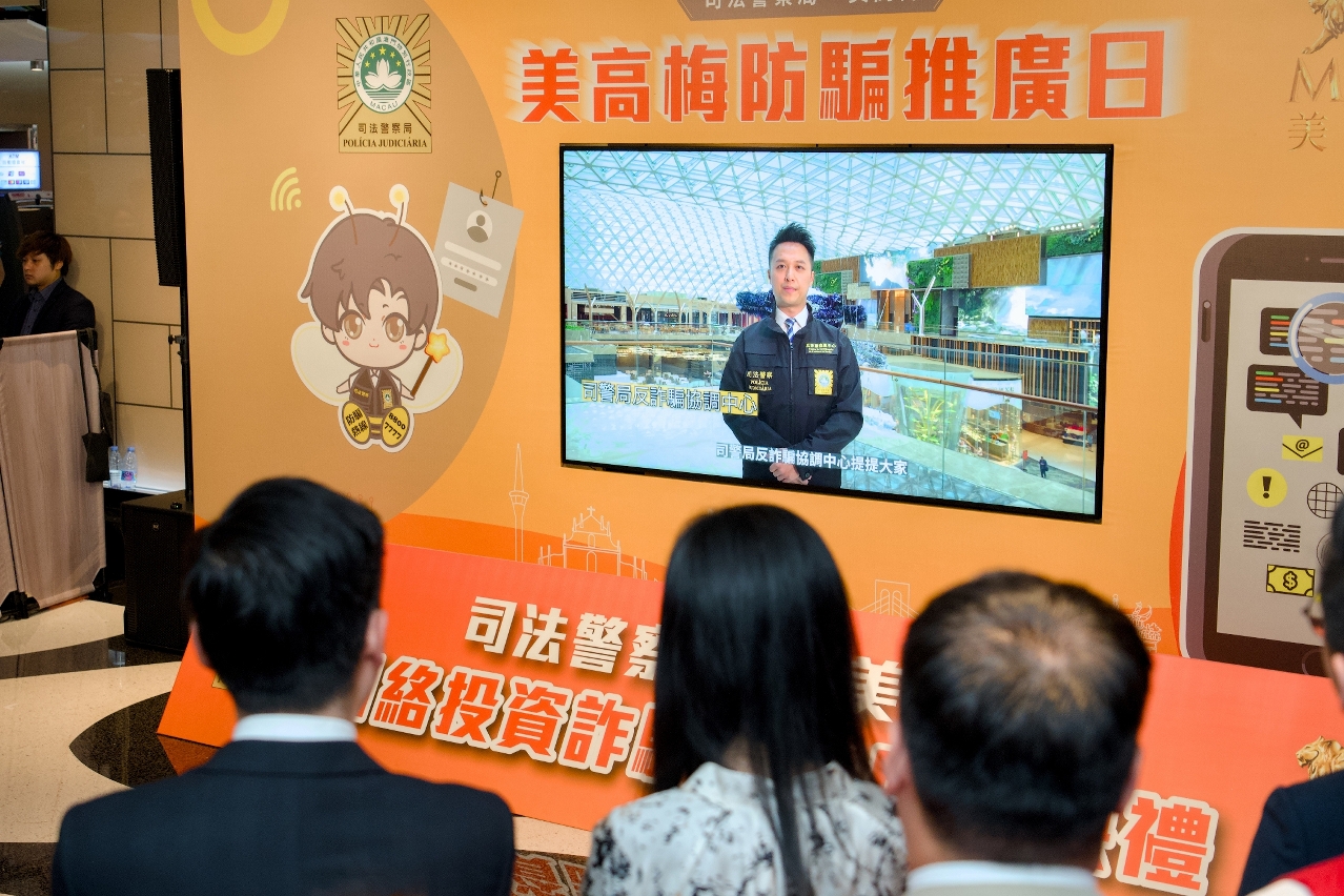 活動首日,由司警局及美高梅合作拍攝及製作的“預防網絡投資詐騙"宣傳片正式首映,同場更向10位企業員工授予“防騙大使"榮譽稱號,鼓勵他們成為企業的防騙宣傳領軍人物,警企共建防範網絡詐騙的社區安全網。
