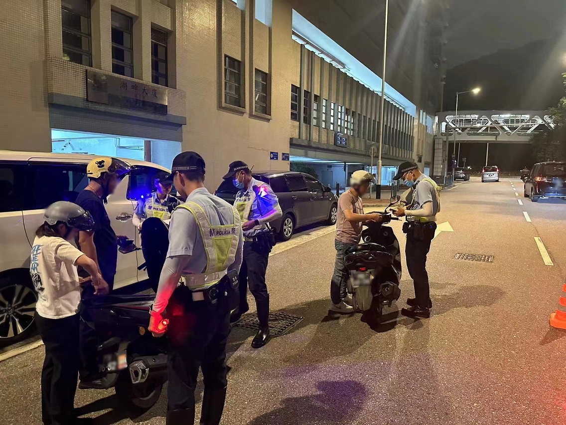 查車行動方面,共截查34輛車輛,合共檢控2宗違例(1宗未能出示有效保險文件及1宗使用遠光燈行車)。