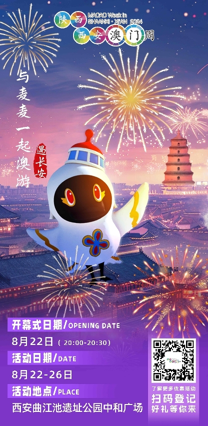 “陝西•西安澳門周”大型路展將於8月22至26日一連5天在西安曲江池遺址公園中和廣場舉行,推廣澳門“旅遊+”元素。多個展區分別介紹澳門概況、美食、節慶盛事、澳門大賽車博物館、演藝活動及體育盛事等,同時帶來文創、“澳門製造”、“澳門品牌”及葡語國家產品,並推廣澳門“特色店”。此外,介紹橫琴粵澳深度合作區的文旅資源,推廣“團進團出”旅遊模式,促進澳琴一程多站旅遊。澳門6家綜合度假休閒企業將介紹其服務及產品,多家內地線上旅行社亦將在現場銷售旅遊產品。