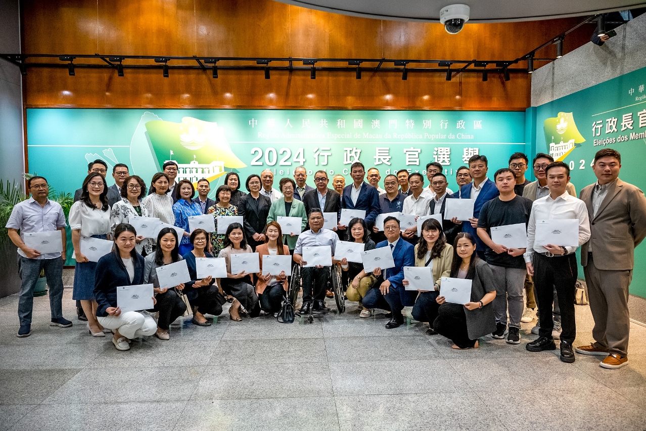 至此,行政長官選舉委員會全體委員:第一界別工商、金融界共120人,第二界別中的文化界26人、教育界29人、專業界43人、體育界17人,第三界別中的勞工界59人、社會服務界50人、宗教界6人,以及第四界別中的立法會議員代表22人、澳門地區全國人大代表12人、澳門地區全國政協委員的代表14人、市政機構成員代表2人,共400名委員均已正式宣誓就任。
