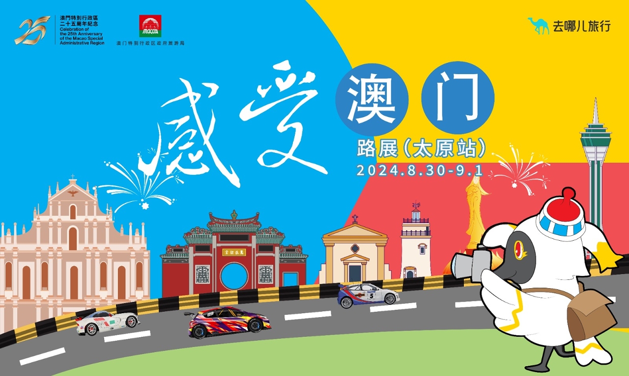 “感受澳門”路展(太原站)將於8月30日至9月1日在人流暢旺的太原茂業天地購物中心揭幕,一連3天為當地居民送上凸顯澳門“旅遊+”元素的活動。路展現場設有不同主題展位,包括:澳門旅遊諮詢處、AI合影展位、VR體驗、大賽車模擬器體驗、扭蛋機抽獎、景點打卡位、遊澳產品推銷、盛事和社區遊資訊及美食展位等。3天路展有精彩舞台表演及合共設有25次抽獎,與當地居民同賀澳門特區成立25周年。