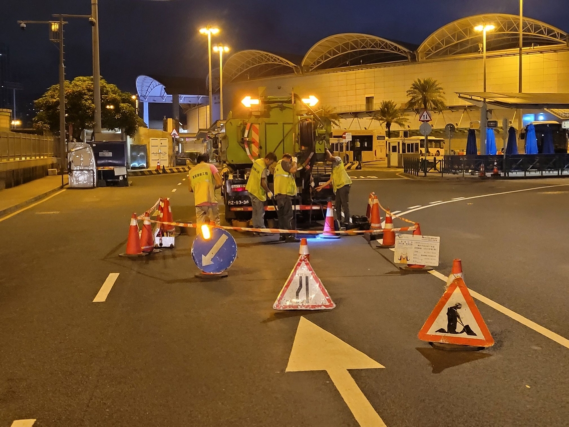 因應颱風“摩羯”迫近本澳,氣象局預料風力將會增強,雨勢將趨頻密,市政署除持續加強各區下水道疏通及檢查渠網、泵房外,近期亦針對低窪及個別水浸易發點,包括新橋區、內港區、下環區、氹仔舊城區等加密排查和清理;今年8月單月已清理下水道逾2萬米,於下水道清出的污物量超過87噸。同時,亦已對個別箱涵渠開展專項清淤,包括完成城市日大馬路、望德聖母灣及氹仔孫逸仙博士大馬路雨水箱涵渠清理,現時亦正有序對林茂雨水箱涵渠進行清淤,保障雨水排水系統的運作效率與穩定性。