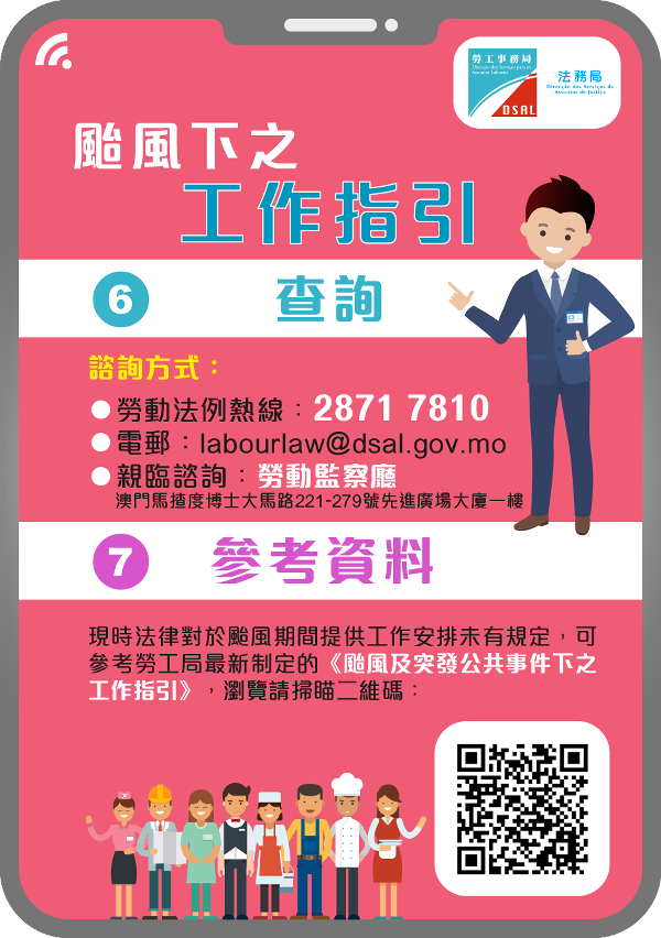 颱風下的工作指引圖文包(https://www.dsal.gov.mo/zh_tw/standard/download_graphic_laborproblem_typhoon1.html)