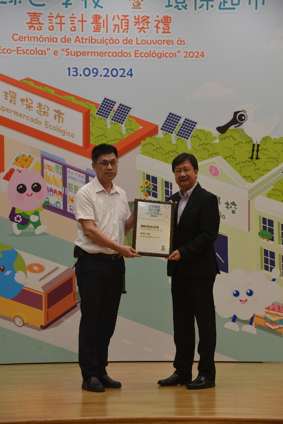 頒獎禮於環保局演講廳舉行,今年合共54間學校參與“綠色學校嘉許計劃”,為歷年最多。經評審最終共39間學校獲獎,其中,勞校中學榮獲最高殊榮之“綠色學校白金獎”。同時,今年共26隊獲得“環保教案設計獎勵計劃”獎項,以及共54組學生小組獲得“環保校園嘉Fun獎”。各得獎學校結合澳門的環境現況,在校內舉辦一系列與國家“雙碳”目標、乾淨回收、減廢惜食、節能減排等主題活動,提升學生的環保意識。