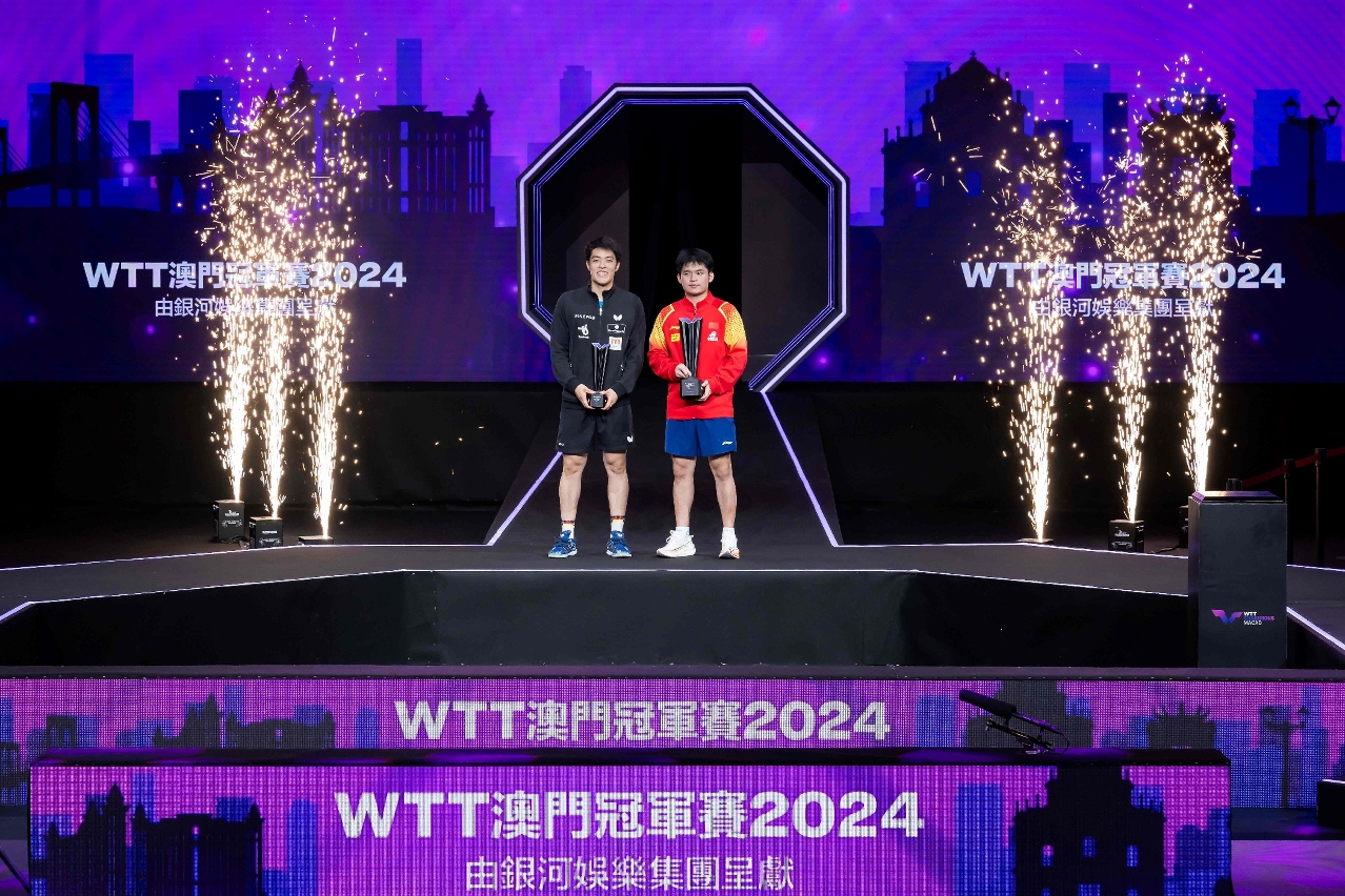 由體育局、世界乒乓球職業大聯盟(WTT)及銀河娛樂集團主辦、澳門乒乓總會協辦的「WTT 澳門冠軍賽 2024由銀河娛樂集團呈獻」,今(15)日於澳門東亞運動會體育館上演冠軍戰,男、女子單打冠軍分別由中國林詩棟及孫穎莎奪得。澳門特別行政區行政長官賀一誠出席活動觀賞賽事,並擔任頒獎嘉賓。