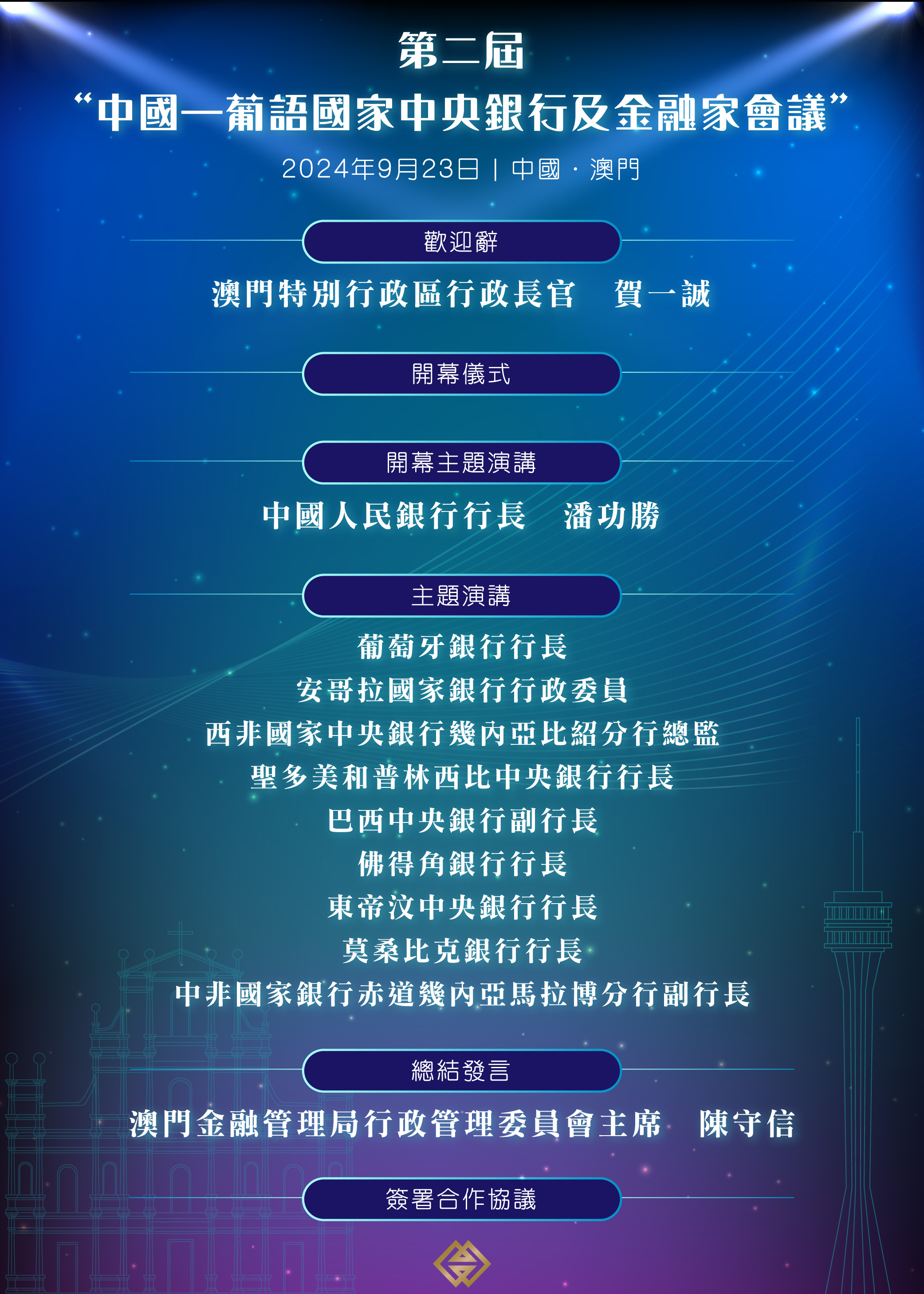 會議還將匯聚粵港澳大灣區兄弟城市金融領域的政府部門代表,以及來自中國內地、葡語國家和本澳的金融業界高管。隨着大灣區逐漸成為中國經濟國內國際“雙循環”的重要樞紐,此次會議將為各方提供探索合作的機遇,為澳門現代金融業的發展集思廣益,有助落實《澳門特別行政區經濟適度多元發展規劃(2024-2028年)》提出的建設“中葡金融服務平台”重點任務。