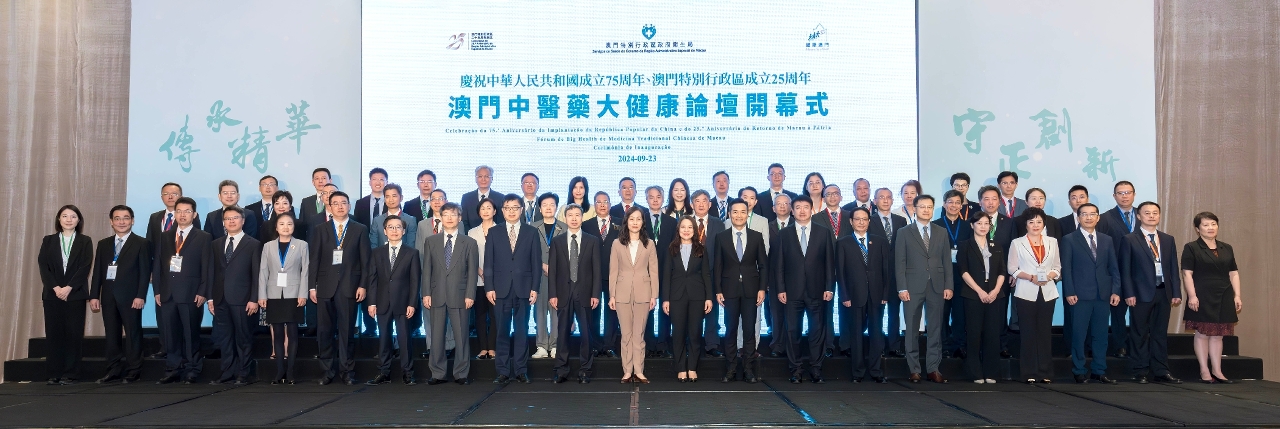 為推動本澳中醫藥大健康產業發展,加強與內地交流合作,發揮本澳作為世界衛生組織傳統醫藥合作中心和中葡平台的作用,推動中醫藥現代化、產業化、國際化,衛生局今(23)日舉辦“慶祝中華人民共和國成立75周年、澳門特別行政區成立25周年、澳門中醫藥大健康論壇”,論壇的開幕式由社會文化司司長歐陽瑜、國家中醫藥管理局副局長王志勇、社會文化司司長辦公室主任何鈺珊、中央人民政府駐澳門特別行政區聯絡辦公室宣傳文化部部長萬速成、衛生局局長羅奕龍、國家中醫藥管理局港澳台辦公室主任吳振斗、國家中醫藥管理局人事教育司司長陸建偉、藥物監督管理局局長蔡炳祥、衛生局社區醫療衛生範疇副局長鄭成業擔任主禮嘉賓,共同主持亮燈儀式。