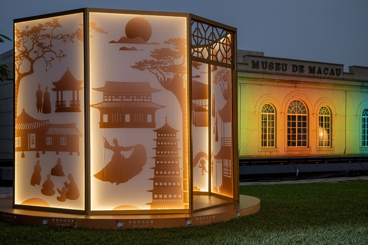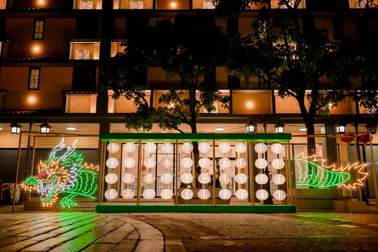 澳娛綜合度假股份有限公司聯同澳門美術協會於即日起至11月30日,在康公廟前地設置十米長的大型花燈藝術裝置《 影龍 》,藝術裝置由澳門本地藝術家劉春紅創作,龍身由多個小燈籠組成,匯集藝術家的標誌工筆國畫畫作,並邀請澳門市民共同創作及欣賞傳統工藝。