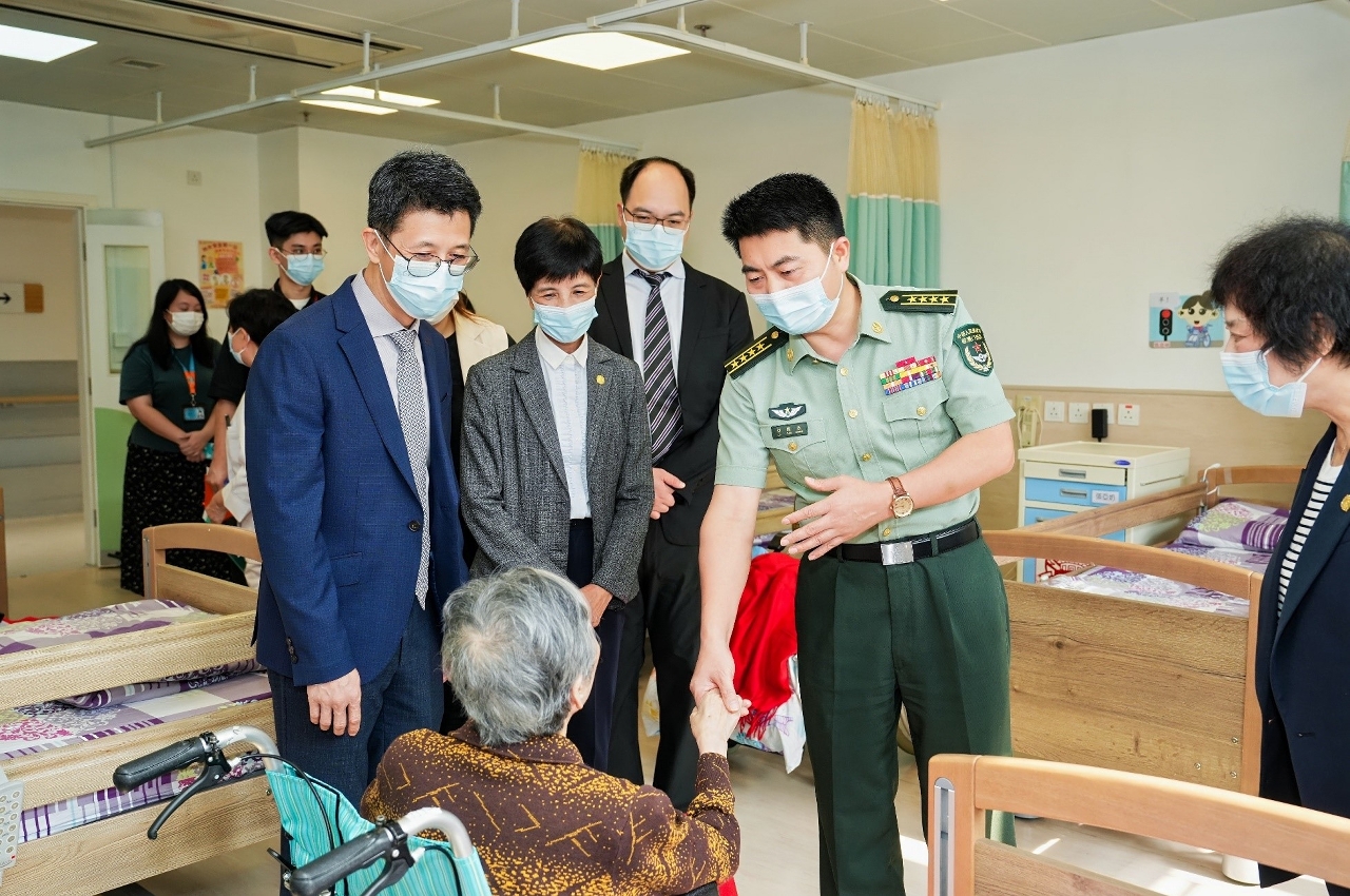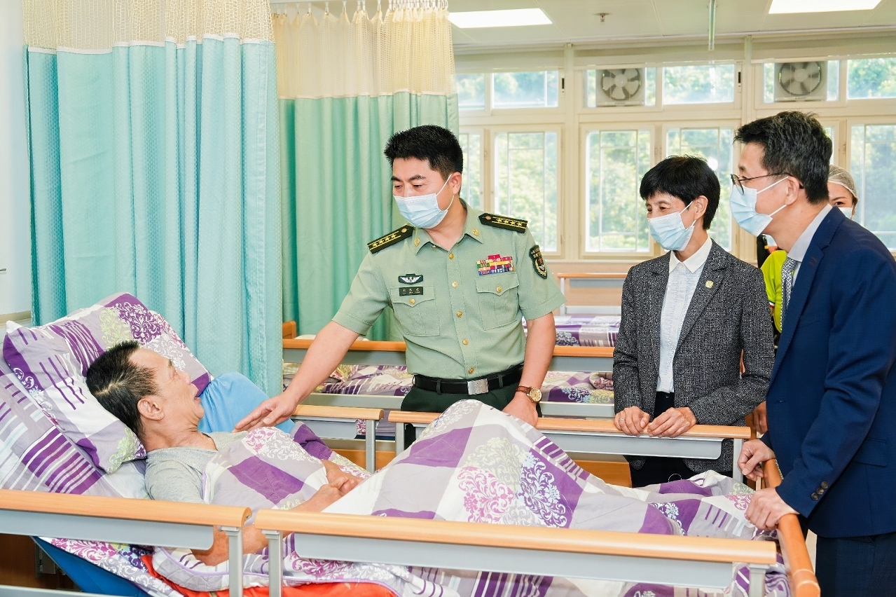 駐澳部隊官兵代表和社會工作局人員首先參觀了工聯九澳護養院的住宿樓層,於生活區向長者問好,並到房間慰問臥床及安養的長者,向他們致以真摯的祝福,肯定他們為澳門建設發展做出的貢獻。