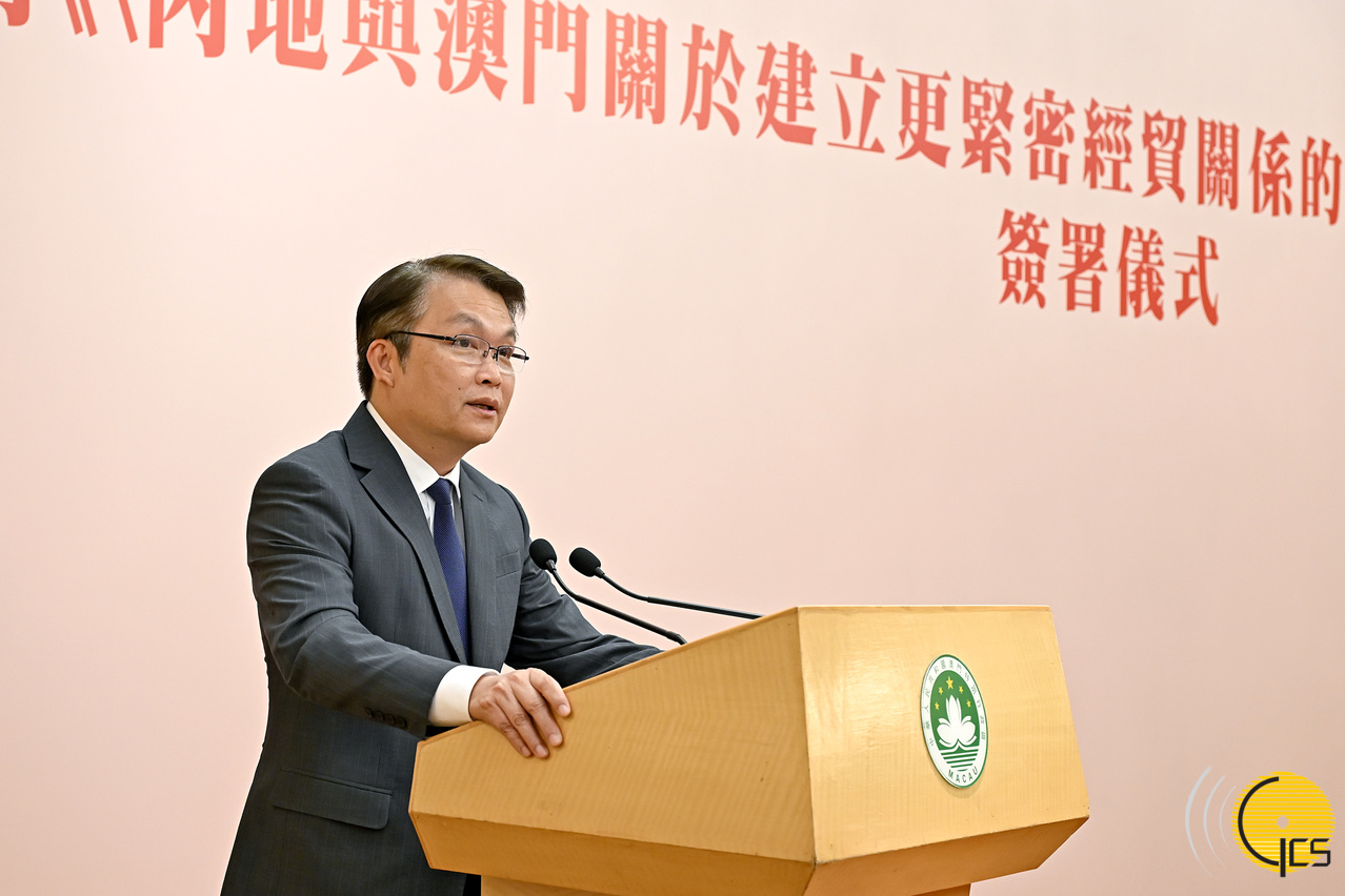 行政長官首先歡迎李詠箑副代表一行率團訪問澳門,代表商務部與澳門特別行政區政府經濟財政司司長李偉農共同簽署關於修訂《〈內地與澳門關於建立更緊密經貿關係的安排〉服務貿易協議》的協議二(《修訂協議二》)。他表示,衷心感謝中央政府對澳門特區的關愛和支持,商務部和各有關部委一直對澳門的經濟及社會發展給予的有力支持。多年來,通過與商務部簽訂CEPA以及一系列補充協議,讓澳門特區擴大發展空間,為特區未來進一步拓展經濟適度多元創造更多的有利條件。未來,期望透過與商務部多方面的合作,為特區的可持續發展及經濟適度多元提供更有力的支撐。相信CEPA將繼續促進澳門與內地的經濟融合和共同發展,為未來創造更多互惠共贏的成果,進一步鞏固澳門獨特的優勢。